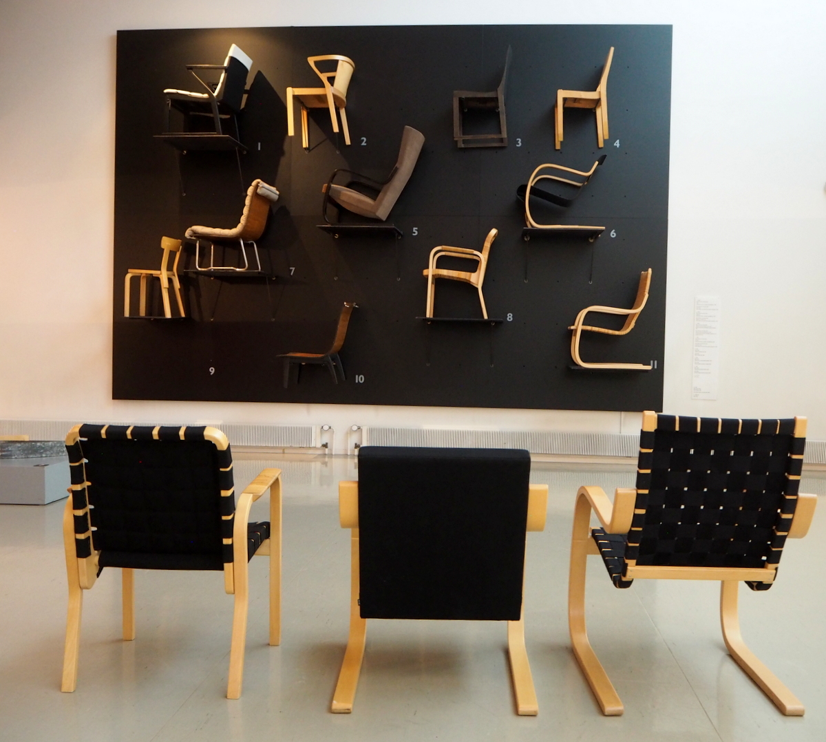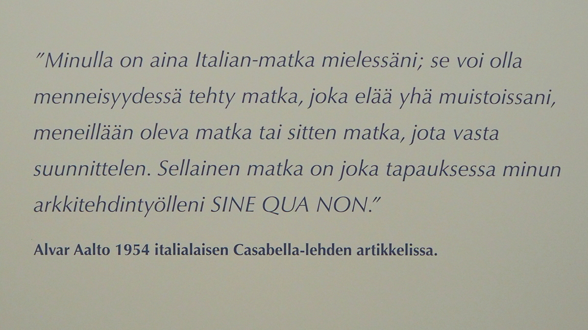 Schildt & Aalto -näyttelyn lisäksi tutustuimme museon perusnäyttelyyn, joka esittelee Aallon suunnittelemia rakennuksia pienoismallein, piirustuksin ja valokuvin ja Aino ja Alvar Aallon suunnittelemia huonekaluja ja valaisimia.