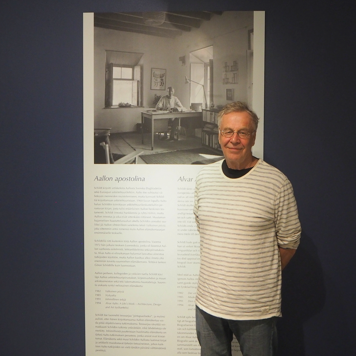 Alvar Aalto -museon kesänäyttely kertoo Göran Schildtin ja Alvar Aallon ystävyydestä ja yhteistyöstä. Elämänikäinen ystävyys alkoi Niilin risteilyllä vuonna 1953 ja jatkui arkkitehdin kuolemaan asti vuonna 1976. Alvar Aalto on suunnitellut vuonna 1970 valmistuneen Villa Skeppetin, Schildtien Tammisaaren kodin ja Göran Schildt puolestaan on kirjoittanut Alvar Aallon elämänkerran.