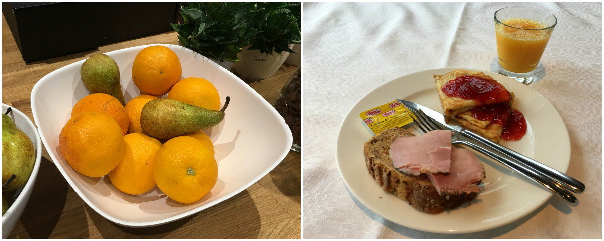 Aamiainen oli ehkä vaihtoehdoiltaan hiukan niukempi kuin Naantalissa, mutta toisaalta ainakaan me emme loistavan illallisen jälkeen kovin paljoa kaivanneetkaan. Letut olivat kiva lisä valikoimaan!