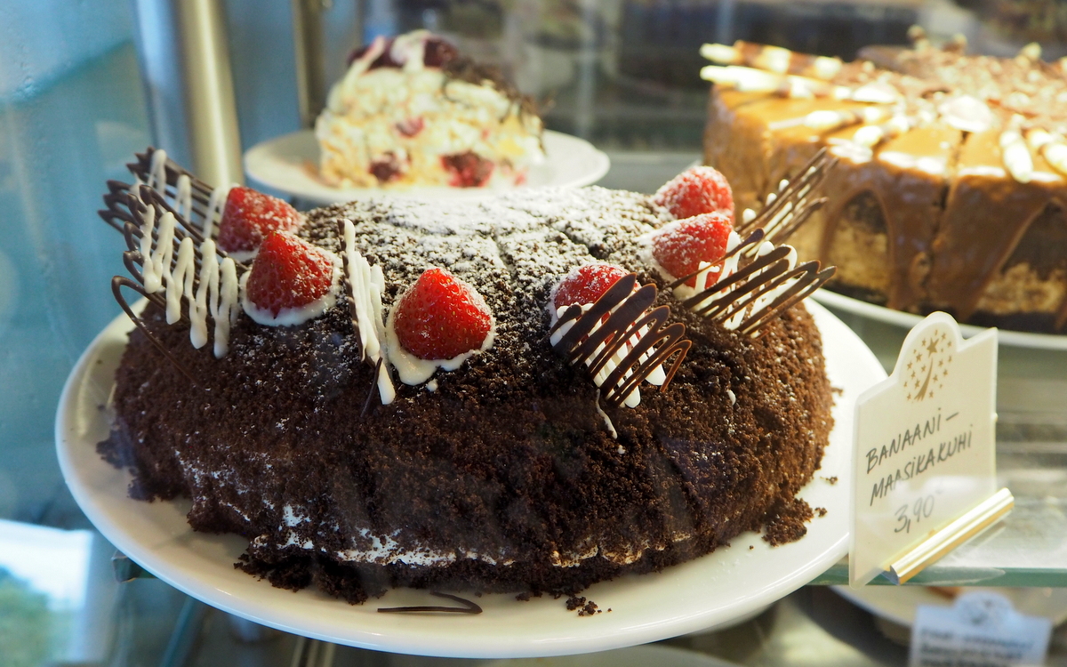 Ihan kelpo kahvilaksi se osoittautui. Miljöönä se ei ehkä säväytä: tila on ilmava ja avara ja tarjoaa jopa näköaloja, mutta kodikkaaksi sitä ei ehkä kutsuisi. Kakkuvaihtoehtoja on kuitenkin runsaasti ja palvelu pelaa. Kevyitä ruokavaihtoehtojakin olisi varmaan ollut tarjolla, mutta tällä kertaa tyydyimme kahviin, teehen ja reilunkokoiseen kakunpalaan.