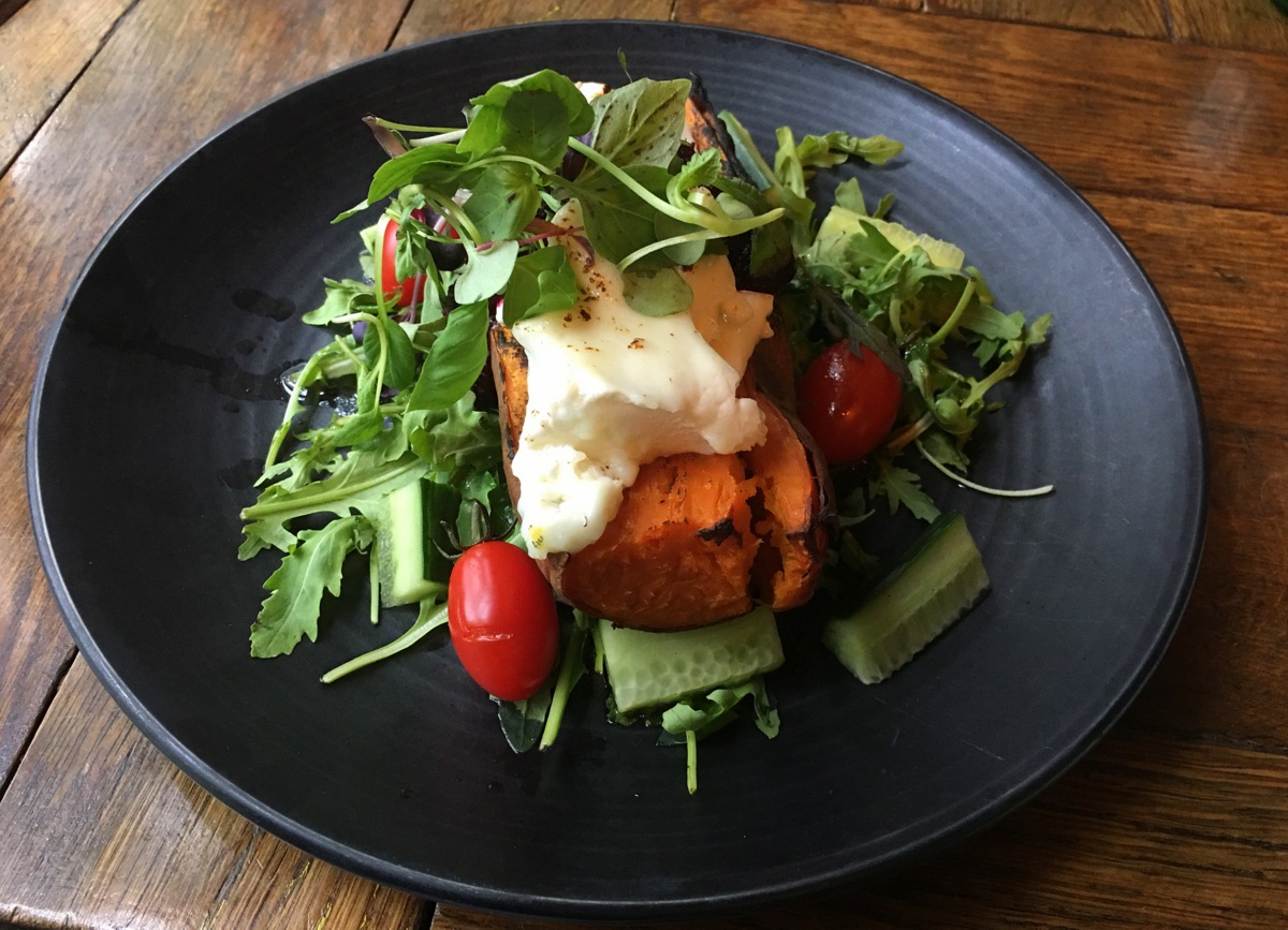 Ravintolan netissä olevassa menussa ei ainakaan tätä kirjoitettaessa enää/vielä ole tuota bataattiruokaa, mutta ehkä ravintolan menu muuttuu reaalimaailmassa nopeammin kuin nettisivuilla.