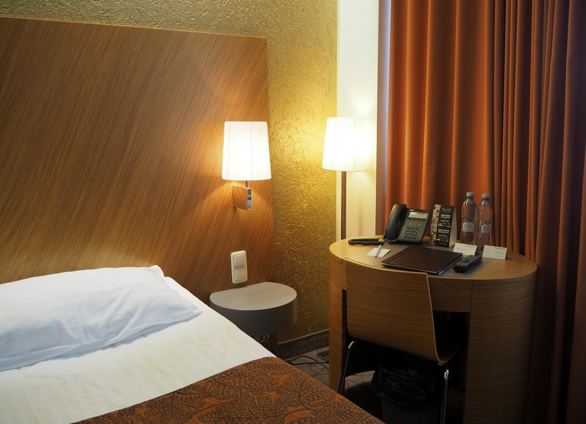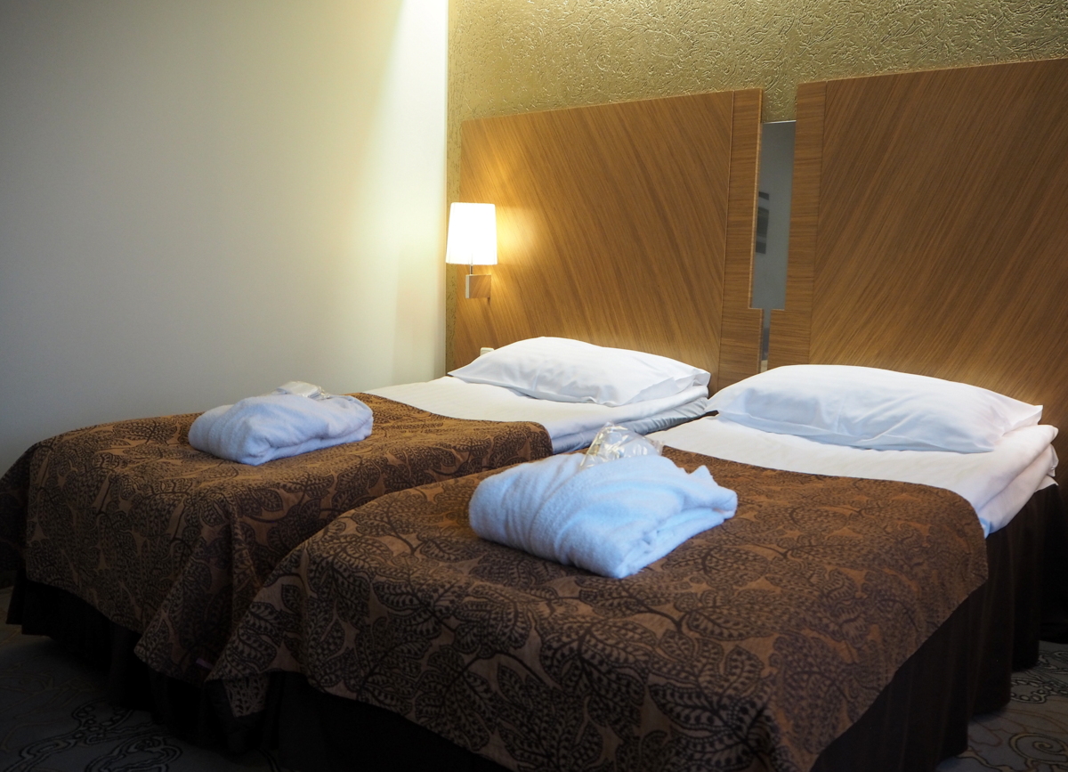 Lennusadamista jatkoimme keskustassa sijaitsevalle hotellillemme, Tallink City -hotelliin. Taivas oli edelleen mustanpuhuva ja iltapäivällä tuli muutama pisarakin, mutta tauko hotellihuoneessa oli muutenkin tässä vaiheessa retkeä hyvä idea ja mikäs oli ollessa, mukavassa huoneessa. Business -luokan huoneessa oli jopa kahvikone, joten ei tarvinnut kahvi/kaakaotaukoa varten edes lähteä alakertaan!