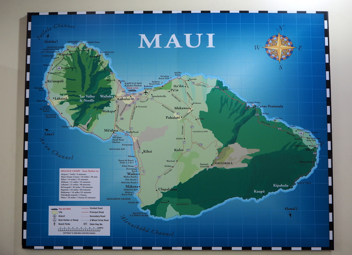 Paluumatkalla Lahainasta Kahuluihin kuljettajamme kertoili tarinoita Mauilta, niin sokeriruo’on viljelyn loppumisesta saarilla kuin siitä miten aikoinaan Havaijin vesillä valaita pyytävät viikingit ja lähetyssaarnaajat eivät oikein samalle saarelle sovussa mahtuneet. Yhdistetyn Havaijin pääkaupunkina Lahaina oli vuosina 1820-1845.