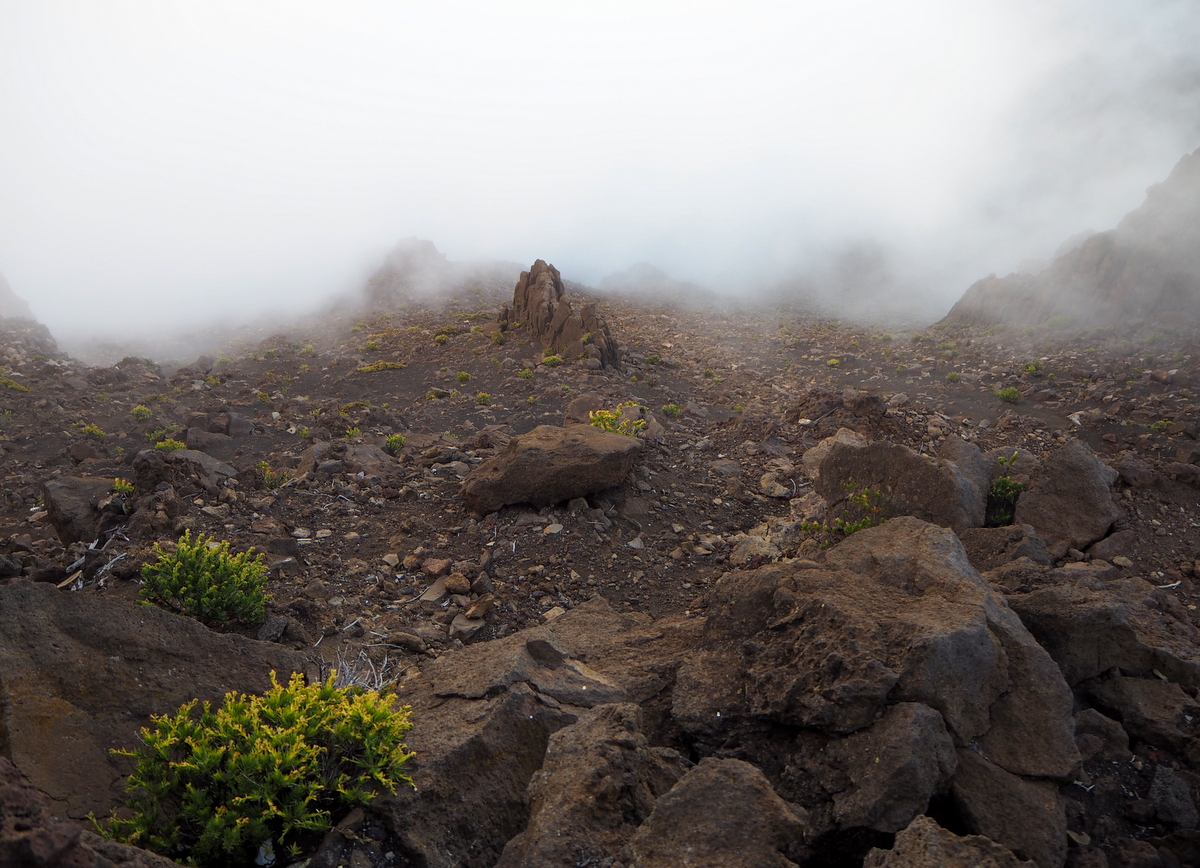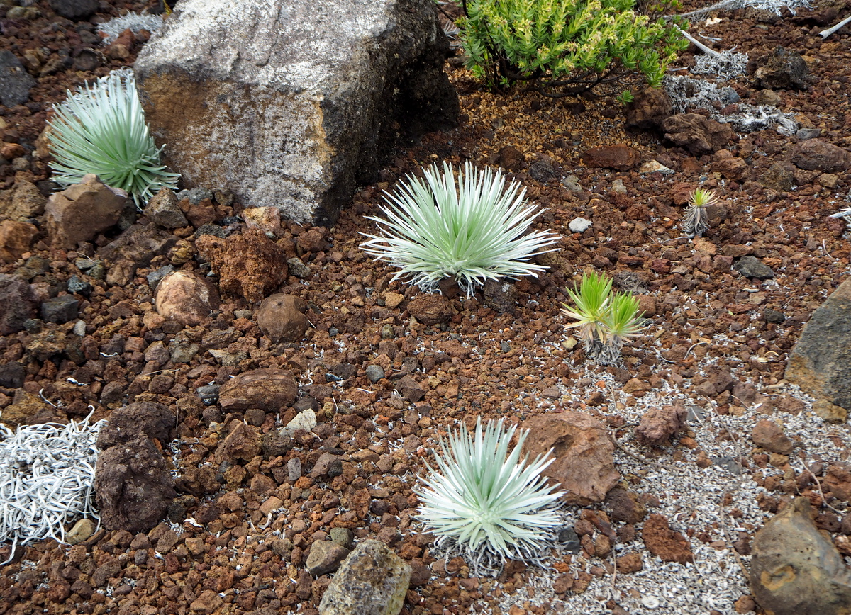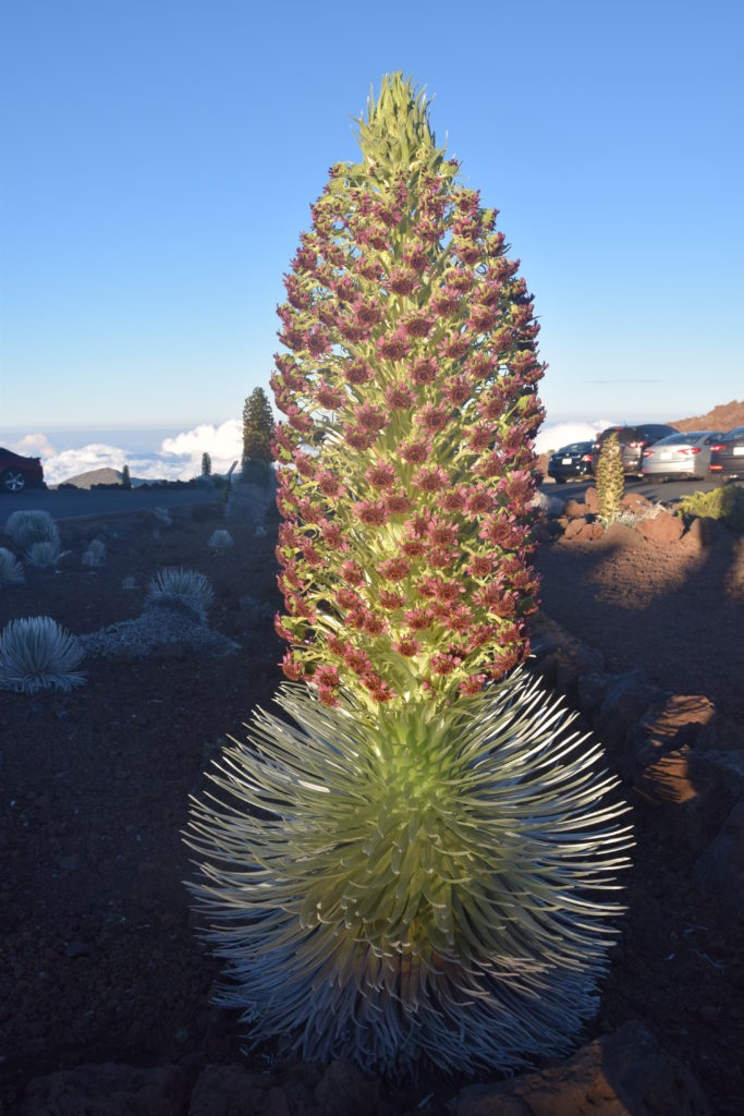 Haleakalasta on kirjoittanut myös Honuanui-blogin Minna – hän oli myös saanut kuvattua tämän uhanalaisen hopeamiekan (Ahinahina) kukkivana.