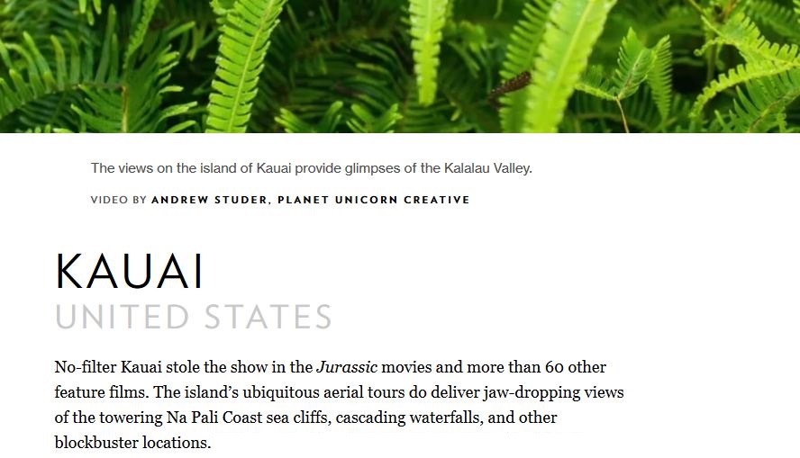 Kauai ja erityisesti Na Palin rannikko on muuten päätynyt (kuten 100-vuotias Suomikin!) National Geographichin listalle parhaista luontomatkakohteista vuonna 2017, mutta eiköhän sinne vielä tulevanakin vuonna voi lähteä!