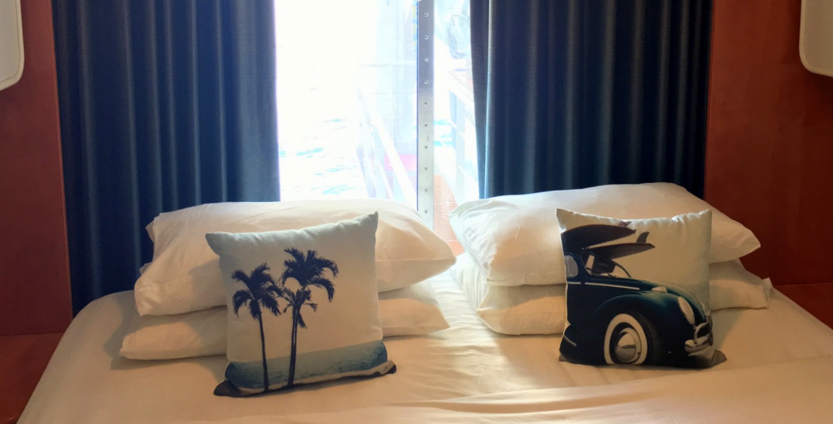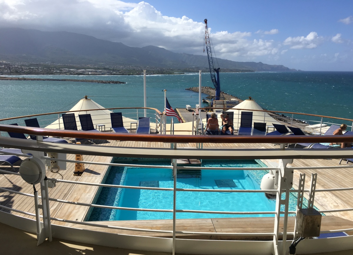 Hytiksi valitsimme tällekin risteilylle ikkunahytin, josta näköala voi olla rajoitettu – joka meidän tapauksessamme osoittautui ikkunan edessä osittain olevaksi pelastusveneeksi. Havaijilla parvekettakin olisi teoriassa voinut käyttää vähän enemmän kuin Alaskassa, mutta risteily oli jo tälläkin hyttivaihtoehdolla sen verran arvokas, että emme halunneet siihen enempää panostaa. Ja riittihän laivassa hyvin yleisiä ulkotiloja niiksi harvoiksi hetkiksi, jolloin päiväsaikaa kannella ehdimme olemaan.