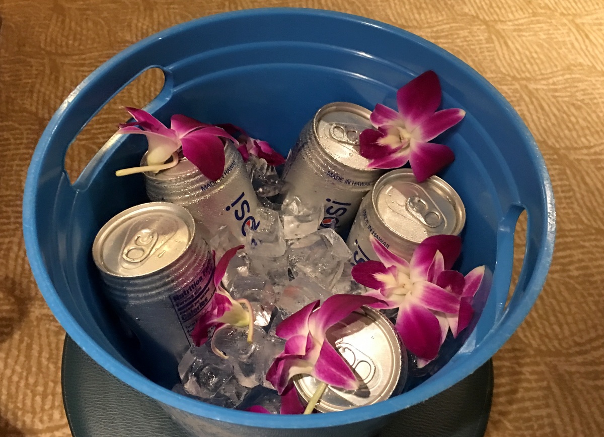Kaj päätti sitten ratkaista tältä osin ongelmani juomapakettien kanssa lähettämällä hyttiimme sangollisen Pepsi-tölkkejä!