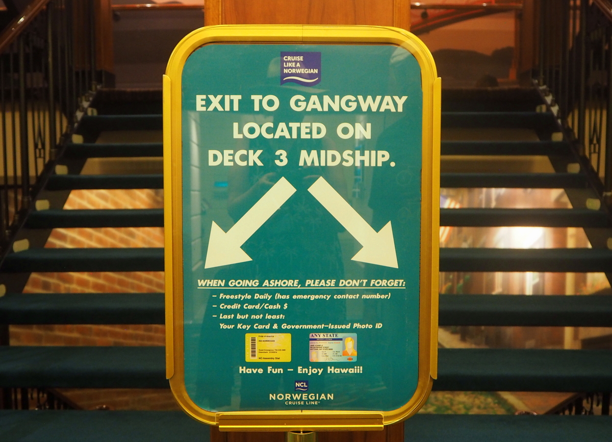 Tuoreen Alaskan risteilykokemuksen jälkeen havainnoimme ehkä Pride of America -laivalla erityisesti laivojen välisiä eroja ja yksi ero kaikkiin aikaisempiin risteilyihimme oli, että rantaan mentäessä oli aina oltava mukana paitsi laivan kortti myös kuvallinen henkilöllisyystodistus, jota kysyttiin niin satama-alueelle tultaessa kuin laivaan sisälle tultaessa. Ehkä tämä lisäkerros turvallisuuteen johtui siitä, että olimme Yhdysvaltojen alueella.