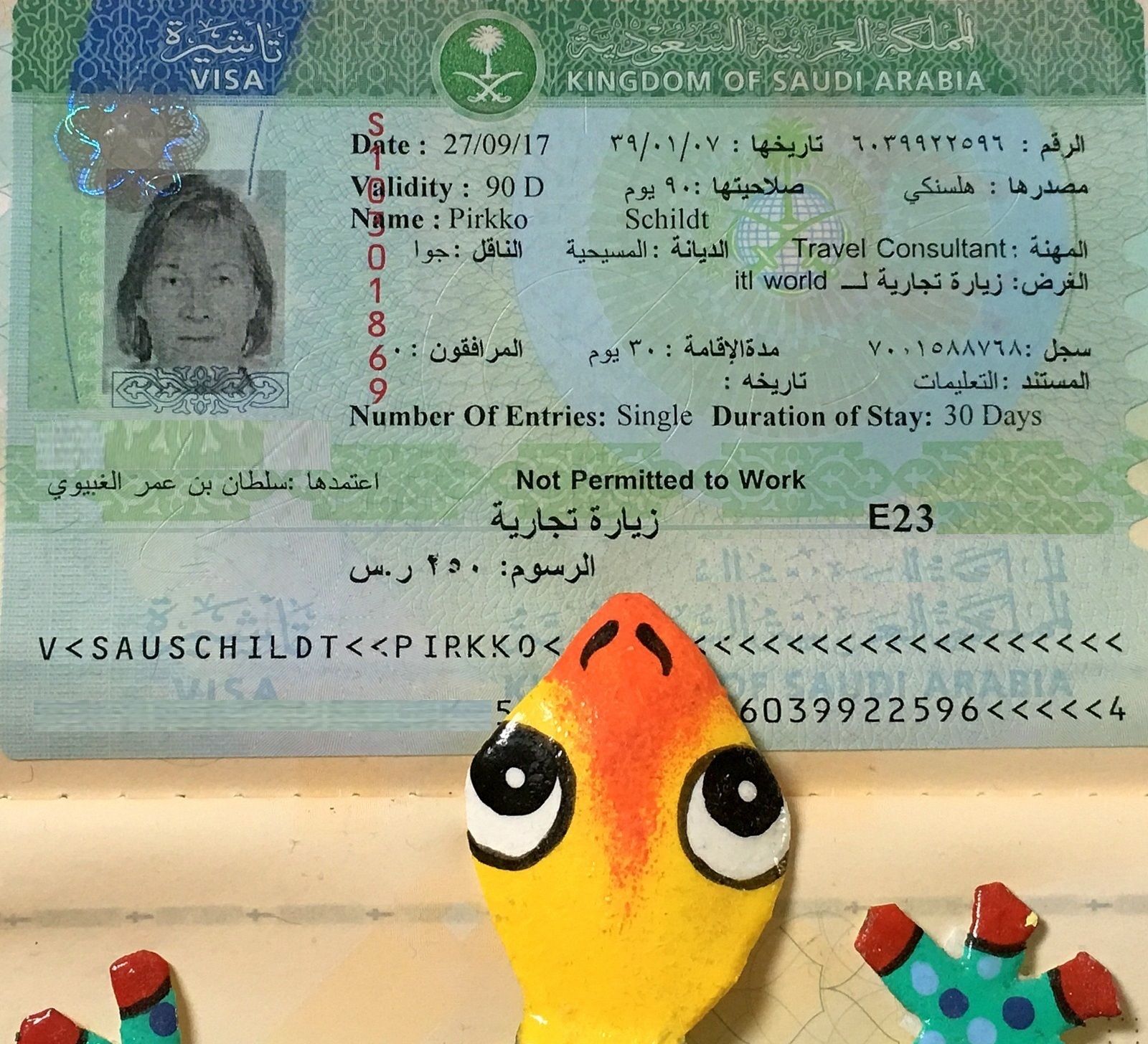Saudi-Arabian viisumit haimme Havaijilta palattuamme. Matkan järjestäjä, Tres Hombres -matkatoimisto, oli vihdoin matkamme aikana saanut tarvittavat kutsukirjeet ja itse viisumien hakeminen sen jälkeen oli helppoa (tai ainakin mahdollista, jos ei nyt ihan liioitella) täyttämällä hakemukset nettisivulla, maksamalla tarvittavat neljä erillistä pientä maksua, yhteensä vähän yli tai ali 100 euroa riippuen pakollisen vakuutuksen hinnasta, joka taas näytti jotenkin riippuvan iästä tai sukupuolesta.