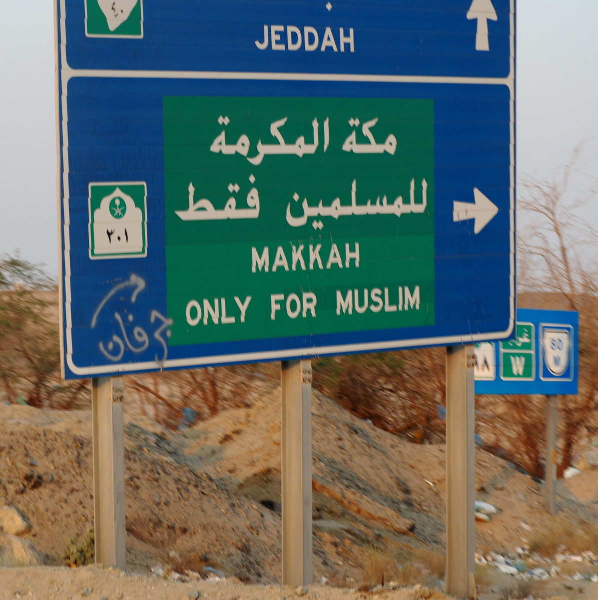 Me emme kuitenkaan päässeet Mekkaan. Mekkaan johtavissa risteyksissä on kaksi vaihtoehtoa: Muslims only tai Bypass for Non-muslims. Kuulemma melko pian risteyksen jälkeen tarkistetaan henkilöllisyyspaperit ja viisumit, joten ei kannata yrittää, vääräuskoisten.