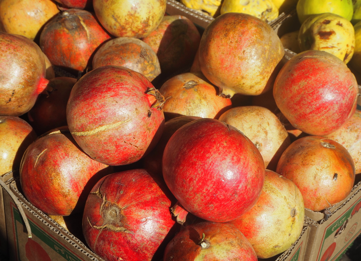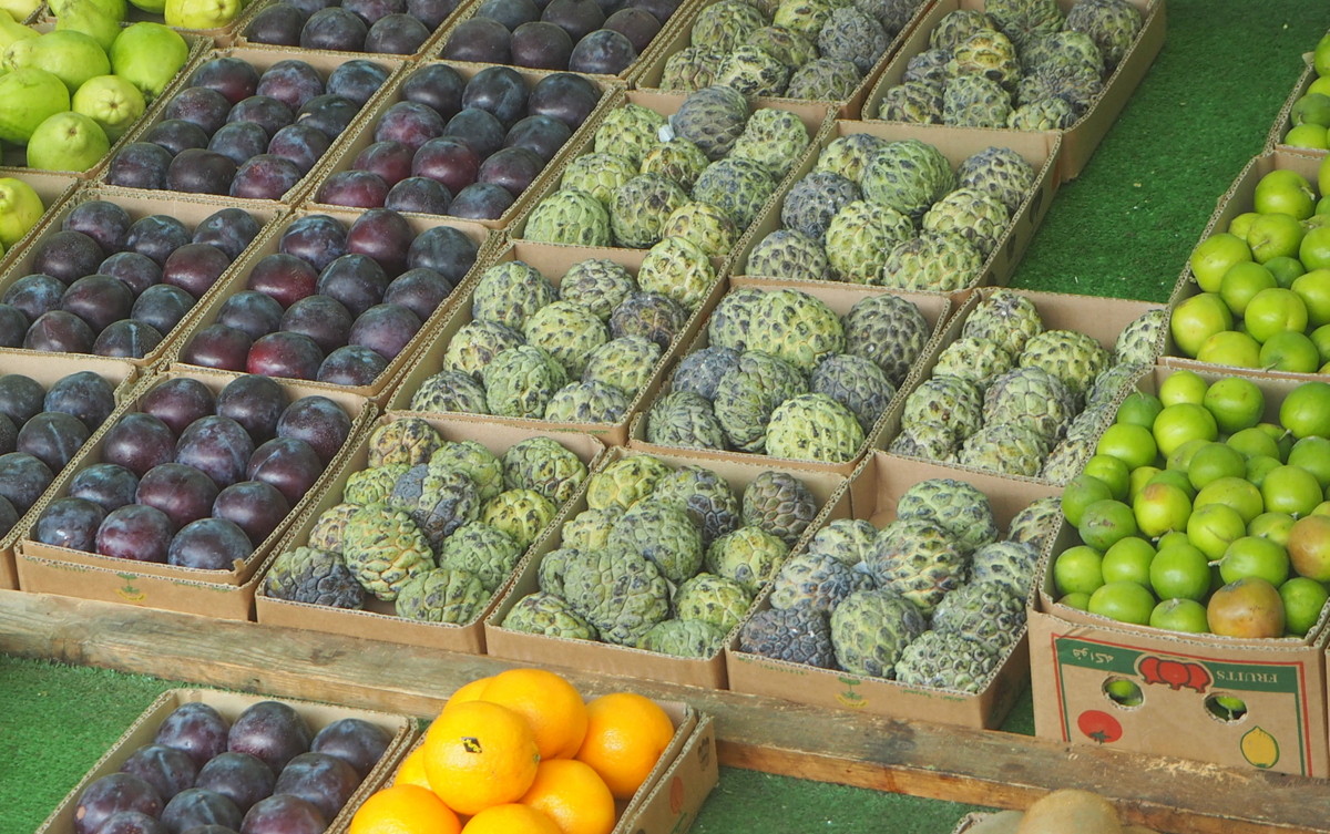 Vielä vierailu hedelmätorilla, jonka jokaisessa kojussa esillepano oli kyllä näyttävää. Maistelimme granaattiomenoiden siemeniä, kaktushedelmää ja minulle uutta hedelmää, englanninkieliseltä nimeltään custard apple, vaniljakastike omena. Saattaa olla suomeksi annoona tai kirimoija, mutta outoja niminä nekin minulle.