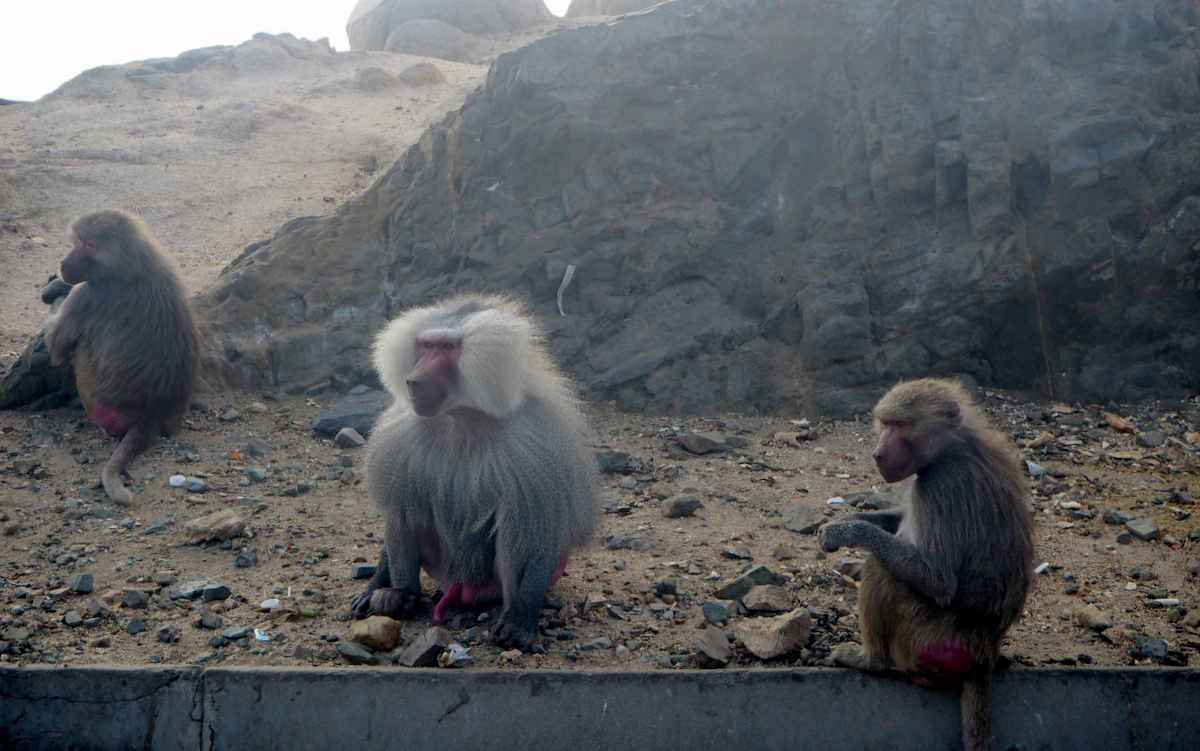 Hedelmät olisivat kelvanneet myös tien varren apinoille aloittaessamme laskeutumisen takaisin laaksoon, mutta oppaamme varoittivat raottamastakaan ikkunoita: nämä apinat eivät aikaile vetäessään vaikka kätesi ulos autosta yrittäessään varastaa ruokaa.