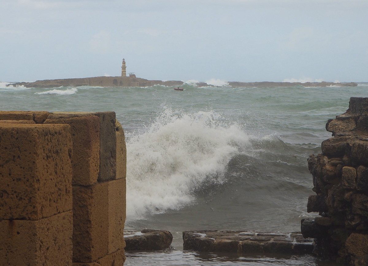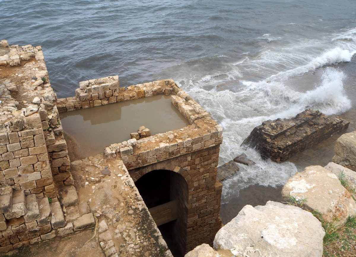 Aloitimme Sidonista meren rannalla. Hiukan harmaana päivänä reipas tuuli nostatti aallot korkealle Merilinnoituksen valleille, mutta mehän pidämme merestä ja tarkalla ajoituksella linnoituksessa saattoi hyvinkin kierrellä ilman, että mikään aalto oikeasti ehti kastelemaan ketään.