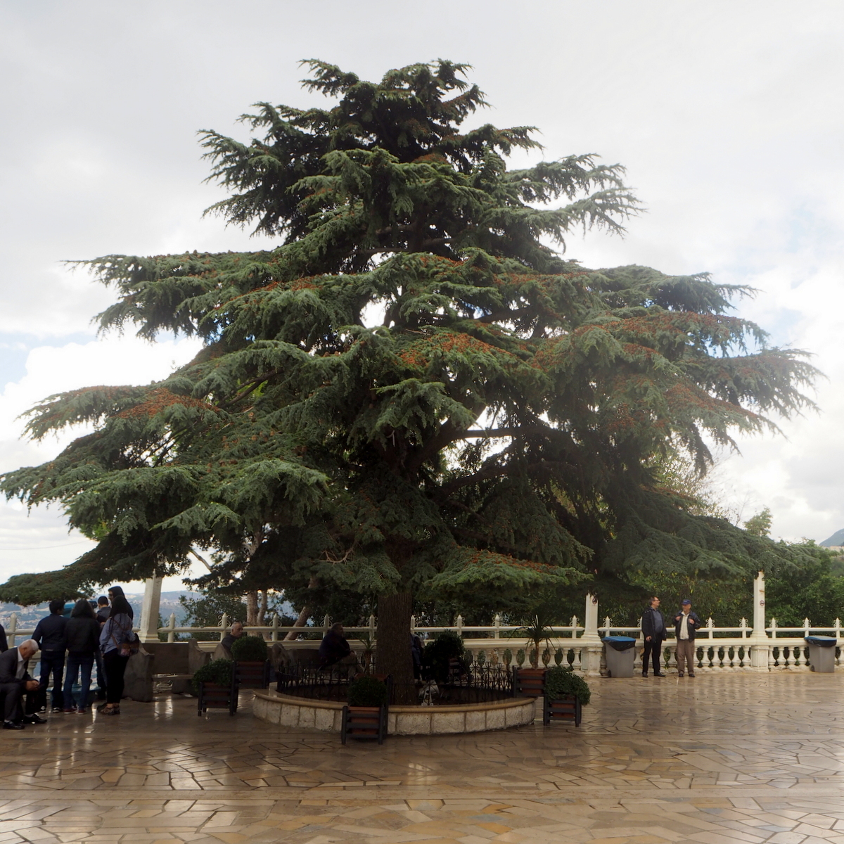 Meille, jotka emme retken oikeana päivänä 4. enää päässeet mukaan kävelylle seetrimetsään pieni puisto patsaan juurella tarjosi jonkinlaisen mahdollisuuden tutustua lähemmin tähän Libanonin lippuakin koristavaan kansallispuuhun.