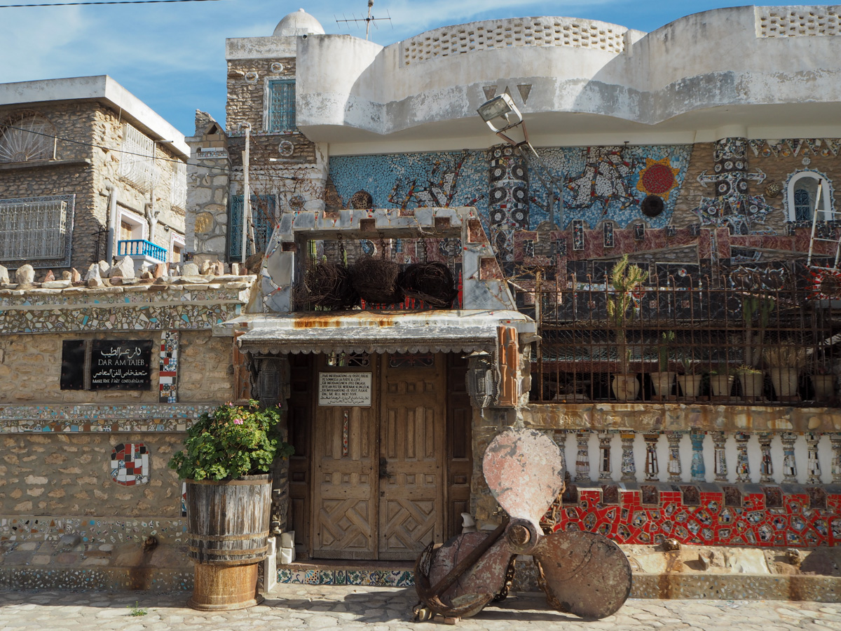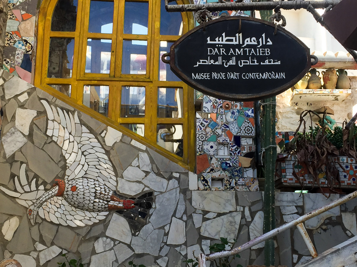 Arkeologisen museon skippasimme, sillä laskeskelimme historiallisten museoiden kiintiömme tulevan täyteen Karthagossa ja El Jemissä ja kelasimme listaa eteenpäin. Ohitimme kylpylät ja vesiurheilukeskuksetkin ja pysähdyimme lopulta nähtävyyteen #10 eli Dar Am Taiebin museoon.