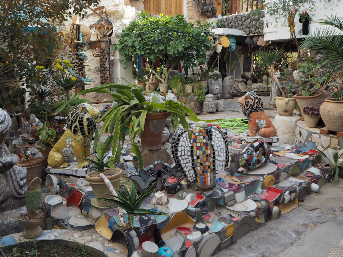 Jotenkin tyylistä tulee mieleen vaikka suomalainen ITE-taiteilija Elis Sinistö ja hänen Kirkkonummella sijaitseva Villa Mehu. Näen tässä myös yhtymäkohtia Alpo Jaakolan Patsaspuistoon Loimaalla. Hyvin kokonaisvaltainen eli myös itse museon koen osaksi taiteilijan taidetta ja sen myös, että hän otti teidät vastaan. Hän on itse myös osa taidettaan.