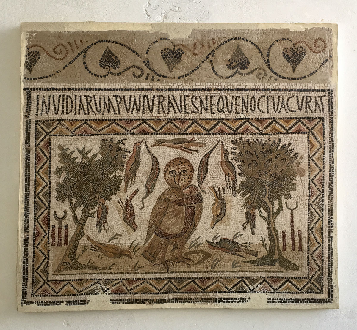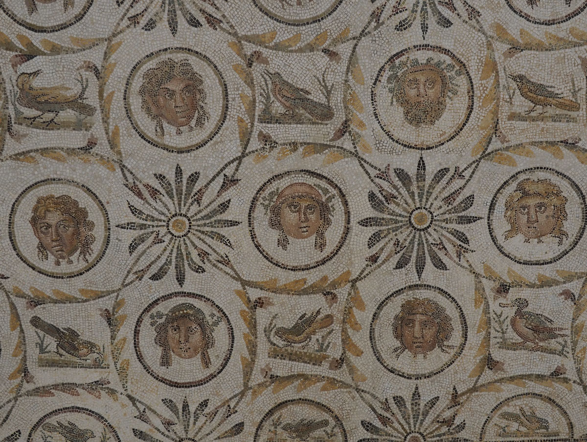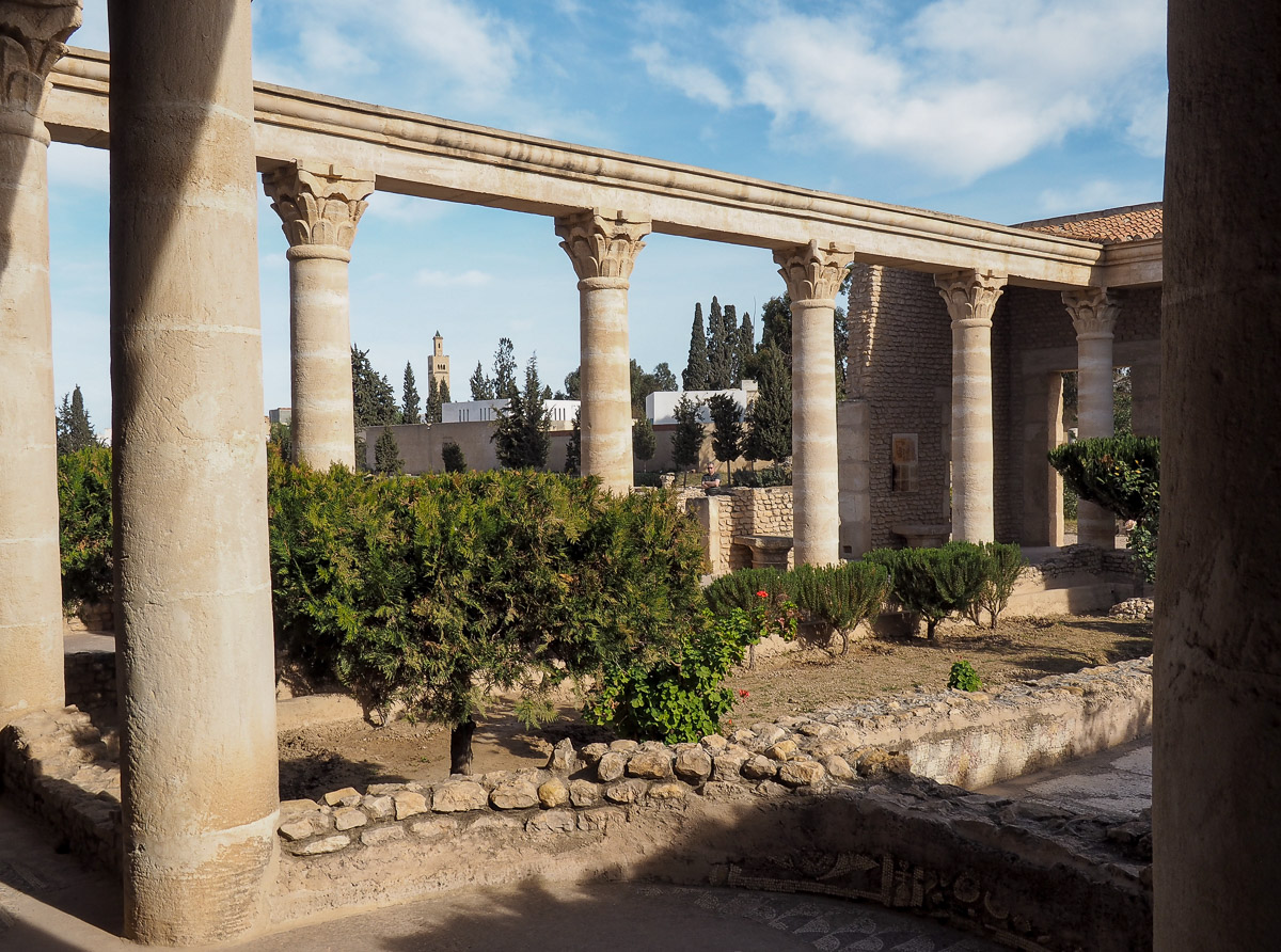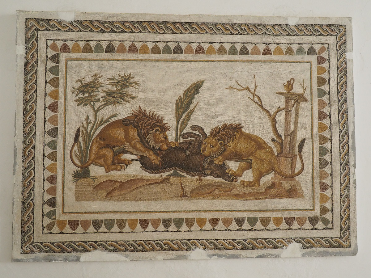 Poikkesimme myös El Jemin mosaiikkimuseossa, jonne oli koottu Tunisian rikasta mosaiikkiperintöä naputtelemassa lattioita irti muutaman sentin syvyydeltä siten, että laatat oli saatu kuljetettua museoon. Museossa useimmat valtavistakin laatoista oli enimmäkseen ripustettu seinille, sillä lattioina ne tietysti vuosien mittaan kuluisivat pois.