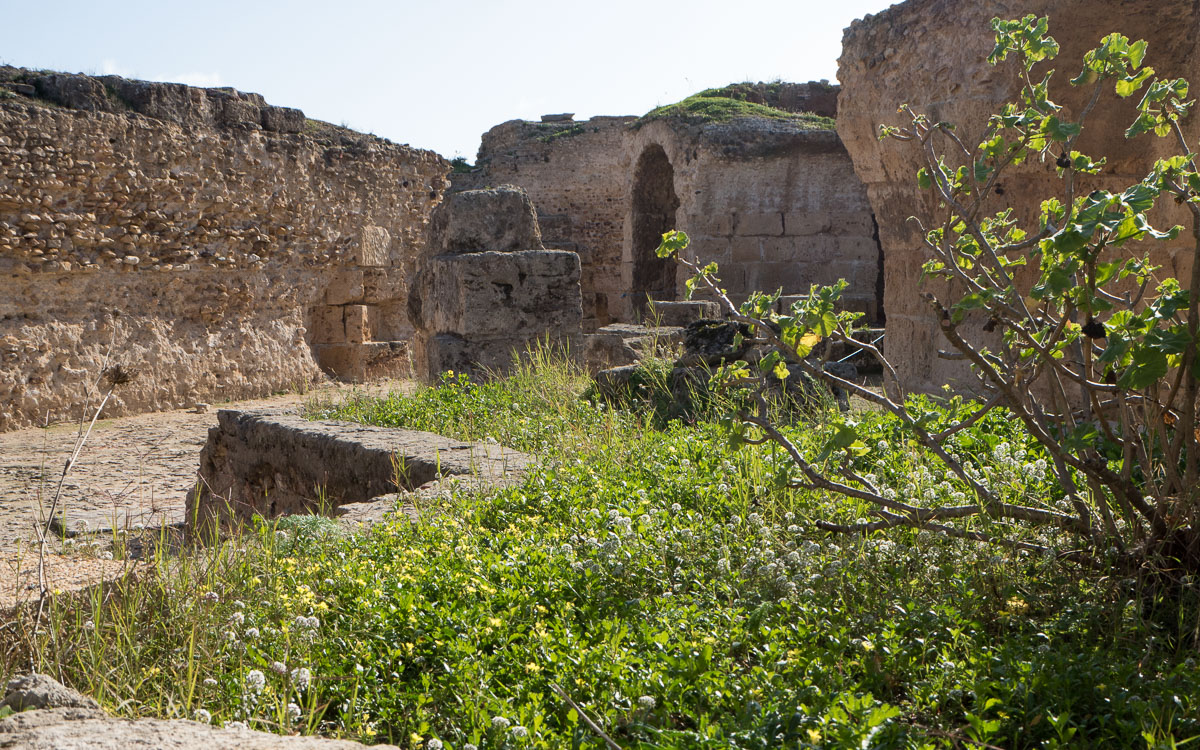 Hiukan Byrsan kukkulaa paremmin on Karthagossa säilynyt rannalla sijainnut kylpylä. Tosin alueen foorumin pylväistä täälläkään ei enää ole jäljellä kuin yksi – muut on tarvittu muualle, mutta muita rakennelmia on säilynyt enemmän.