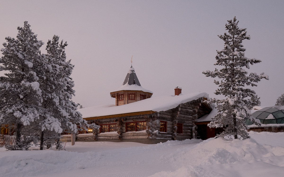 Yöohjelmaa lasi-iglumme ei tällä kertaa tarjonnut kumpanakaan yönä, eli revontulet loistivat poissaolollaan: taivas oli pilvessä ja välillä sateli heikosti luntakin. Etukäteen luin jostakin, että jos on kymmenen yötä Lapissa, niin todennäköisyys nähdä revontulia on talvikaudella jo melko korkea. Tiedä siitä, mutta ainakaan kaksi yötä ei siihen tällä kertaa riittänyt. Tuolla kultaisella 90-luvulla kaikki oli tietysti paremmin, silloin oli revontuliakin :-)