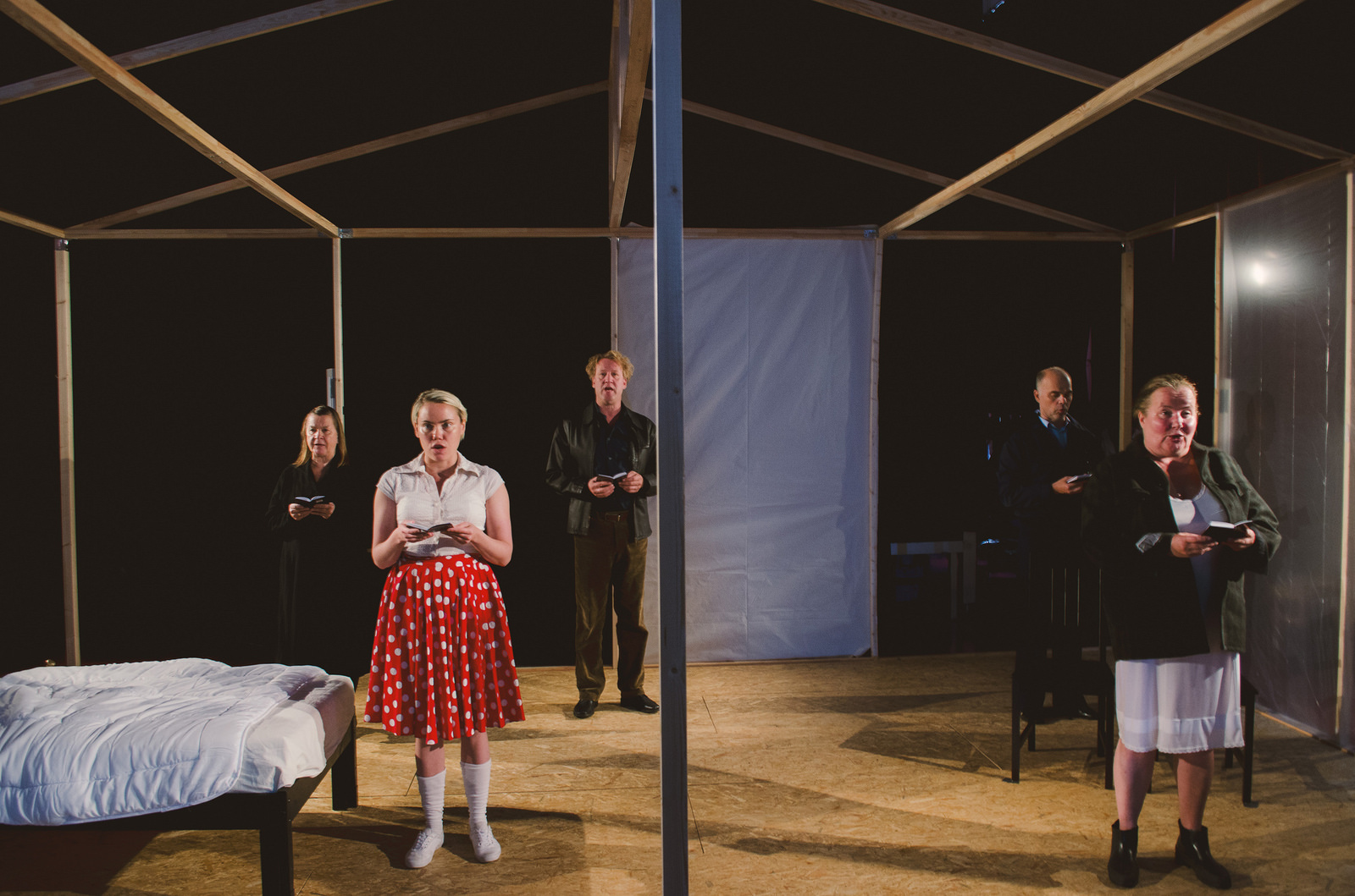 Sara Mellerin Armi on roolissaan uskottava, niin naivina nuorena tyttönä kuin myöhemmin nuorena äitinä ja vaikeasta tilanteesta omilleen selviävänä naisena, joka osaa jo pitää puoliaan. Veli-Matti Karénin Olavi on koko näytelmän ajan vain vastenmielinen hahmo – ei siis sävyjä oikein tässäkään.