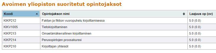 30 opintopisteestä koostuvan kokonaisuuden saa tietyillä reunaehdoilla koota itse tarjolla olevista kirjoittamisen kursseista.