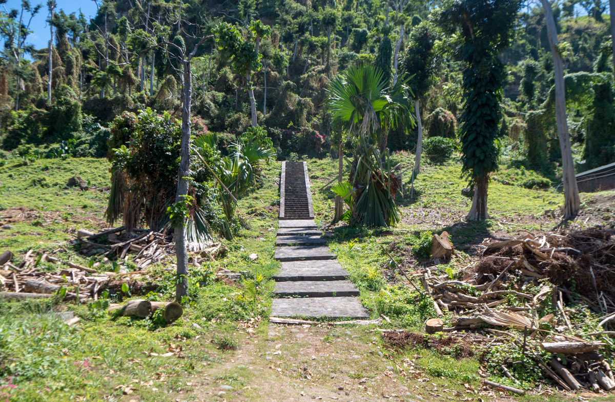 Kasvitieteellinen puutarha osoittautui käyntikohteena mielenkiintoiseksi, sillä sitä ei oikeastaan enää ollut. Hurrikaani Maria oli vienyt rikkonut kasvihuoneet ja pienen lintutalon papukaijat olivat tainneet lentää tiehensä.