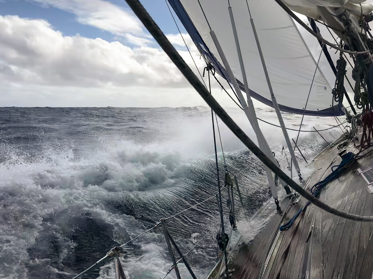 Alkumatkasta keittiössä oli loihdittu lähes gurmee-luokan aterioita ja alkupalaksi ”keittiön terveiset”, mutta tässä vaiheessa toimintakyvyn omaavat miehistön jäsenet lähinnä keskittyivät siihen, että jotain lämmintä ruokaa oli tarjolla. Vaikka vene oli iso ja merikelpoinen, lensi vesi muutamaan kertaan koko veneen yli kastellen kaikki ruorimiestä myöten. Osa miehistön jäsenistä pysyi visusti sängyssä meritaudin kourissa, osan yrittäessä sinnikkäästi hoitaa oman vahtivuoronsa tehden välillä tyhjennyksen laidan yli. Tällöin kyllä muutaman otteeseen itsekin mietiskelin perusteita tälle purjehdukselle lähtemisestä. Jossain vaiheessa pisimpään meritaudin kourissa olleen miehistön jäsenen suusta kuului kommentti: ”Nyt on kyllä niin kova nälkä, onko jotain ruokaa?”. Tämä oli selkeä osoitus siitä, että meritauti oli tämän miehistön osalta voitettu.