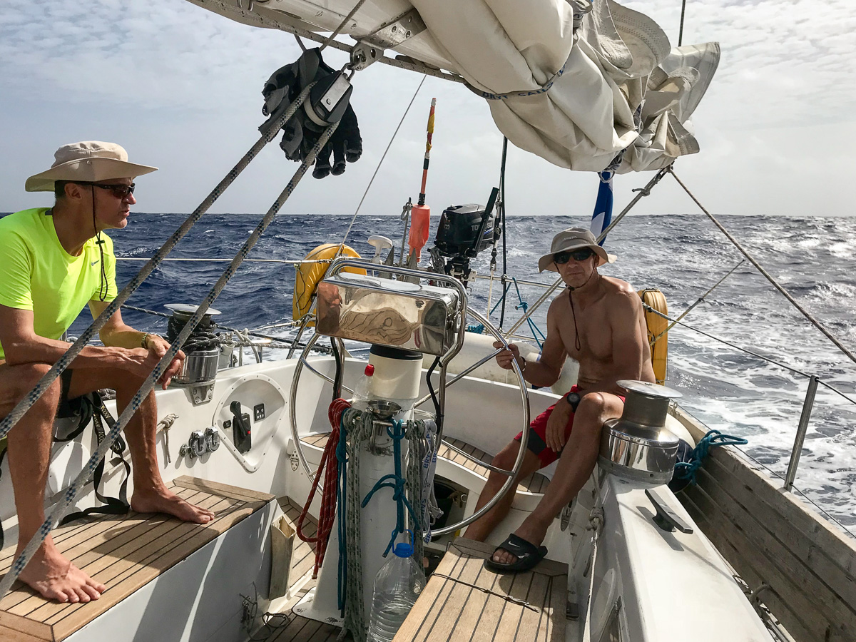 Löytäessämme kuuluisat lämpimät pasaatituulet alkoi ehkä jopa hieman yksitoikkoinen myötätuulipurjehdus. Isolla merellä kun ei ole tarve jiippailla kovin tiuhaan. Seuraavaa jiippiä kapulta kysyessäni sain vastaukseksi ”mennään nyt tämä päivä ja ensi yö sekä seuraava päivä näin ja katsotaan sitten asiaa uudelleen”. Tällaisen hieman kärsimättömän ja aktiivisen luonteen omaavalle tämä otti aika koville. Toisaalta hieman rauhallisempi myötätuuliajo antoi mahdollisuuden testata, josko meri tarjoaisi meille vaihtoehtoja ruokapöytään. Virveli veteen ja sittenhän jo kelassa pärähti merkiksi siitä, että jotain oli tarttunut syöttiin. Tiukan kelauksen jälkeen veneen vierellä oli useamman kilon painoinen dorodo eli mahi-mahi. Jämerällä koukulla kala saatiin veneeseen ja tainnutus hoidettiin kaatamalla korkillinen rommia kalan kiduksiin. Ammattitaitoisesti kipparimme perkasi kalan, minkä jälkeen keittiövuorossa olleet valmistivat koko miehistölle makoisat kalamedaljongit. Lopusta kalasta teimme seuraavana päivänä herkullisen kalakeiton.