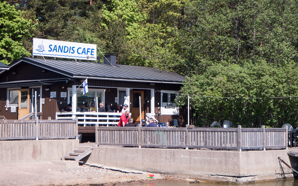 Kesäinen Cafe Sandis näytti lauantaina olevan suosittu paikka myös lähiseudun mökkeilijöiden keskuudessa.