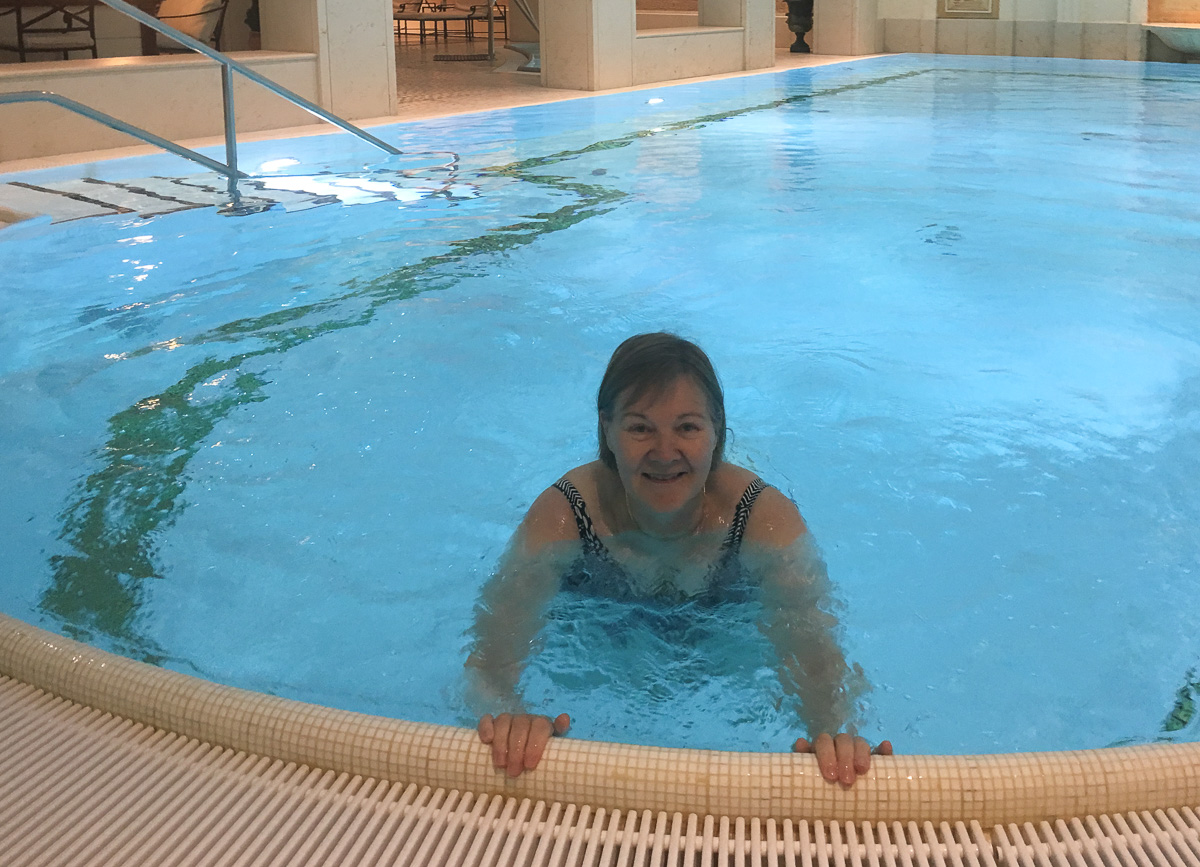Aamulla haluamme viipyä hotellissa niin kauan kuin saamme. Aloitamme aamu-uinnilla kauniissa uima-altaassa, jossa saamme enimmäkseen uida kahdestaan. Arkiaamuna ihmisillä taitaa olla muita kiireitä – tai sitten olemme vaan liikkeellä myöhemmin kuin kiireisemmät vieraat.
