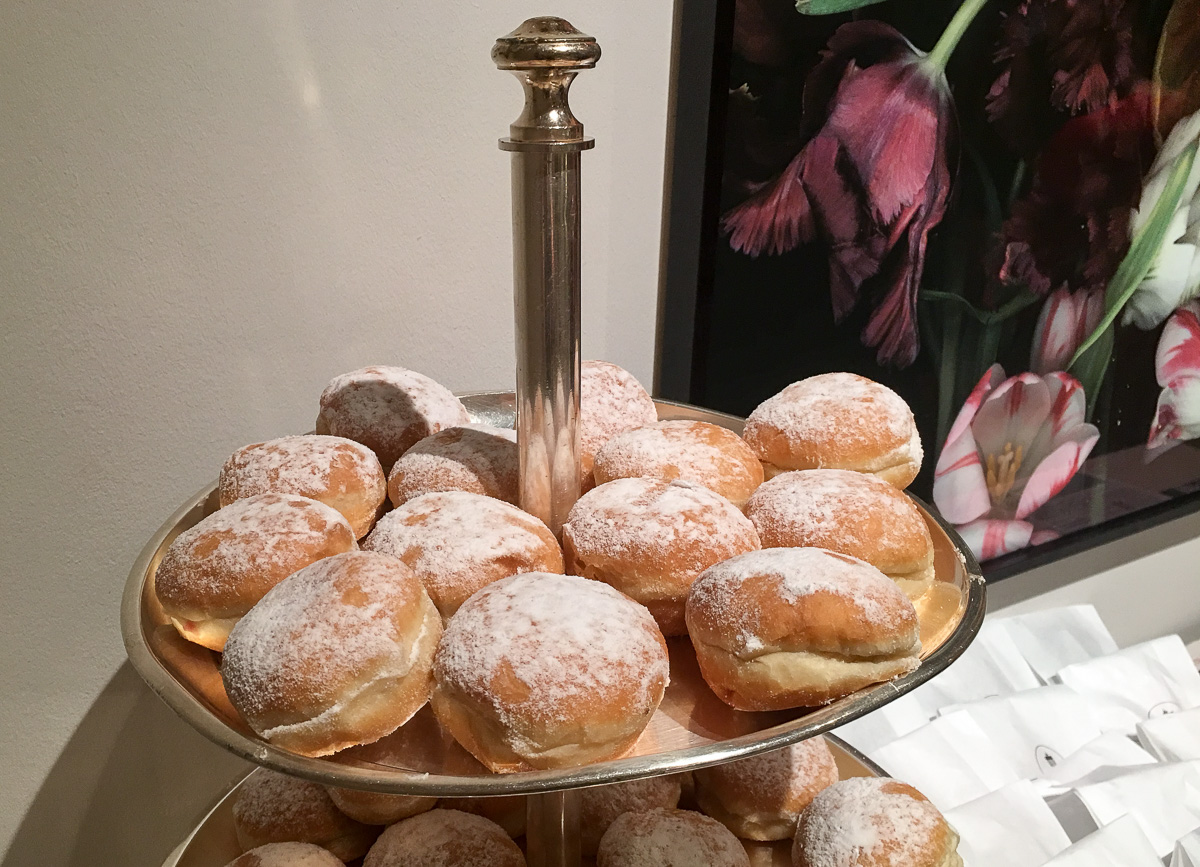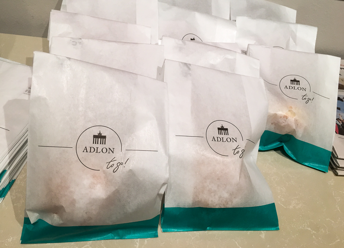 Aamiaisen päätteeksi aamiaissalin ovella tarjolla olevat berliininmunkit, jotka saa mukaansa paperipussissa! Otamme toki omat pussimme ja päädymme syömään ne vasta iltapäivällä kuljetettuamme niitä retkieväinä mukanamme aina Kurfürstendamille asti.