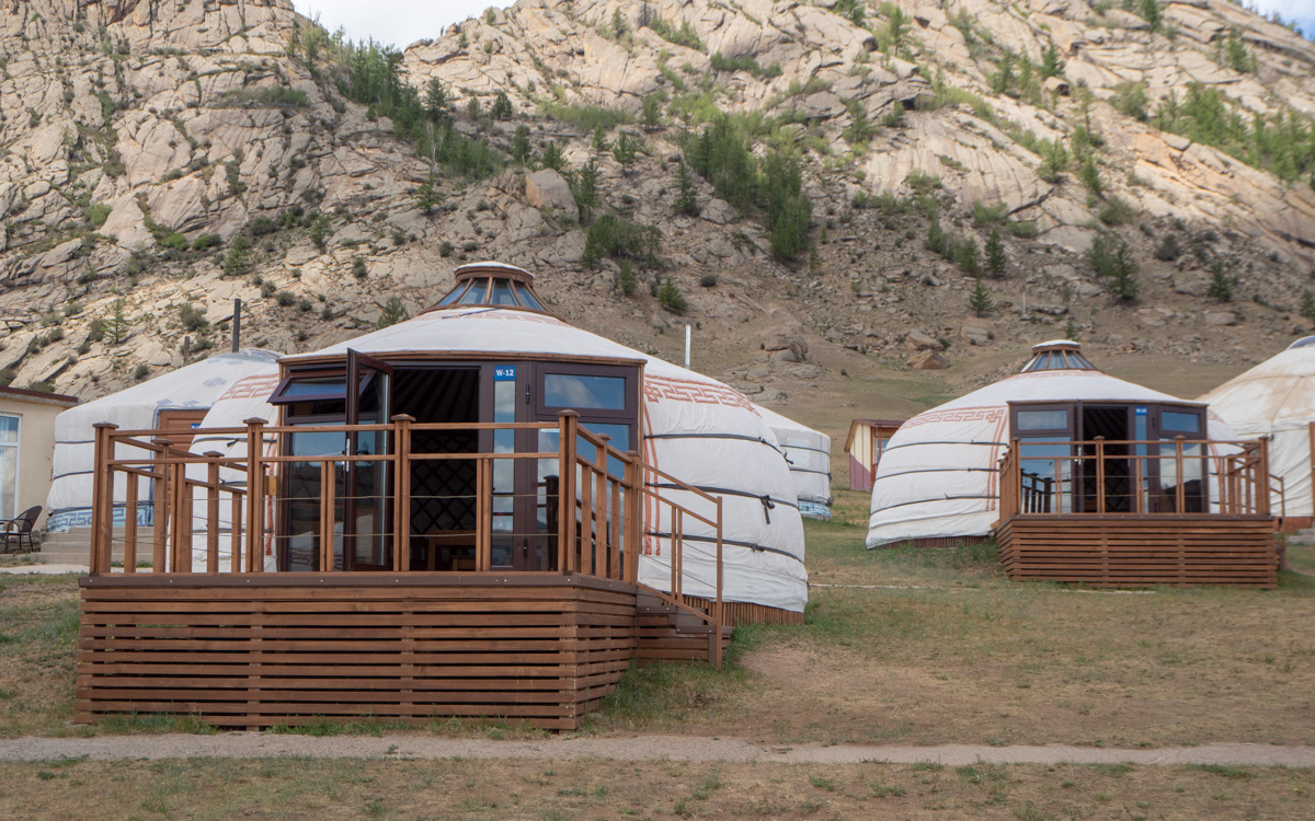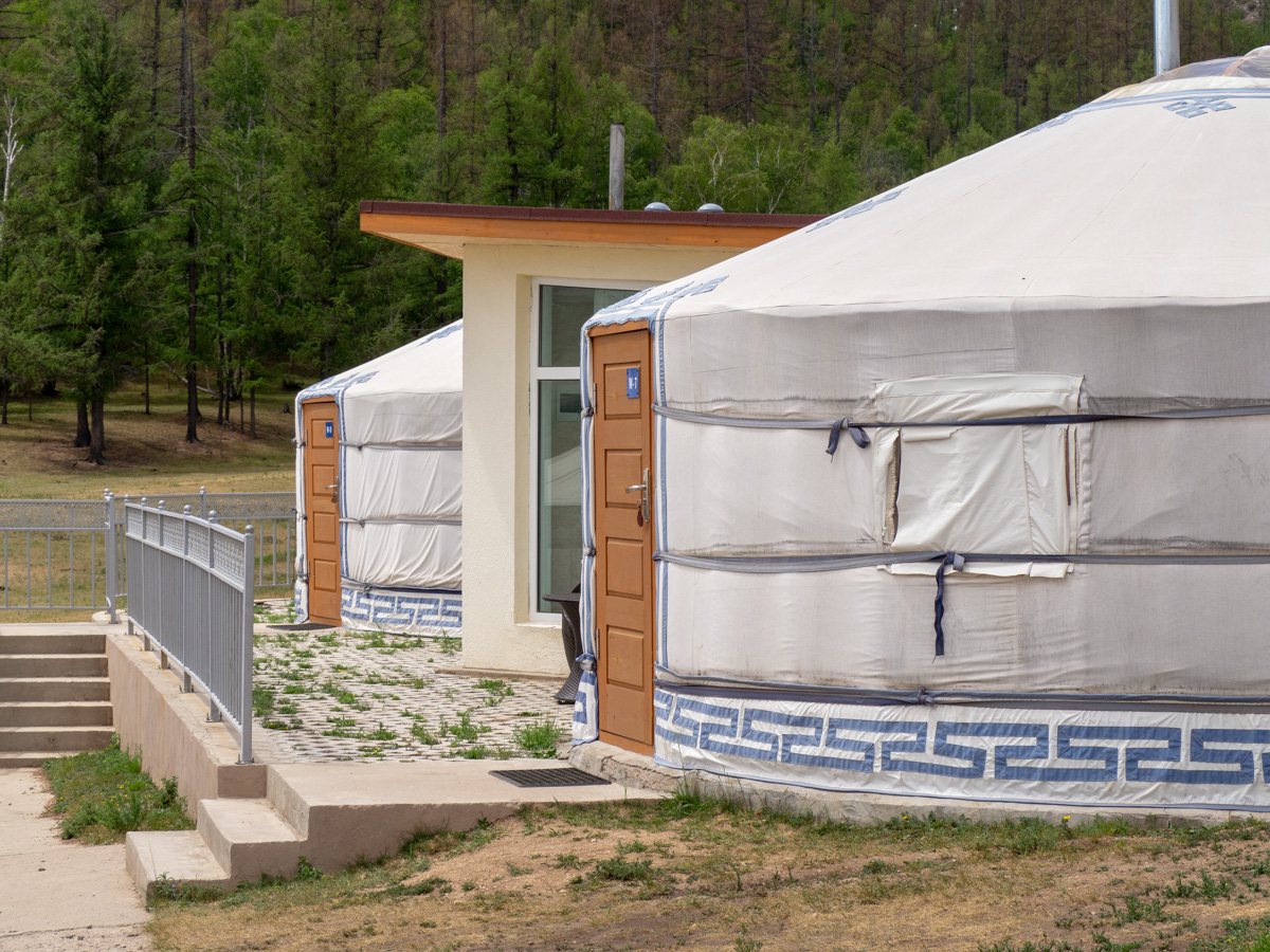 Terelj Lodgessa oli gerejä, joissa oli jopa mukavuudet. Aina kahden perinteisen gerin väliin oli rakennettu kaksi kylpyhuonetta sisältävä kiinteä rakennus, johon sitten gerit liittyivät kummaltakin puolelta.