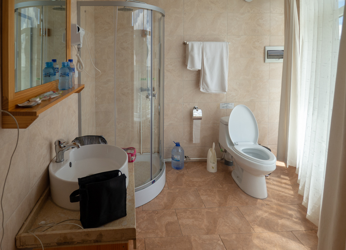 Mongolian turisteille majoitusta tarjoavista ger-leireistä ilmeisesti vielä vain pieni osa on varustettu mukavuuksilla – ja kieltämättä, jotain perinteisyydestä menetetään kylpyhuoneen myötä, mutta toisaalta pidämme oman kylpyhuoneen tuomasta mukavuudesta!