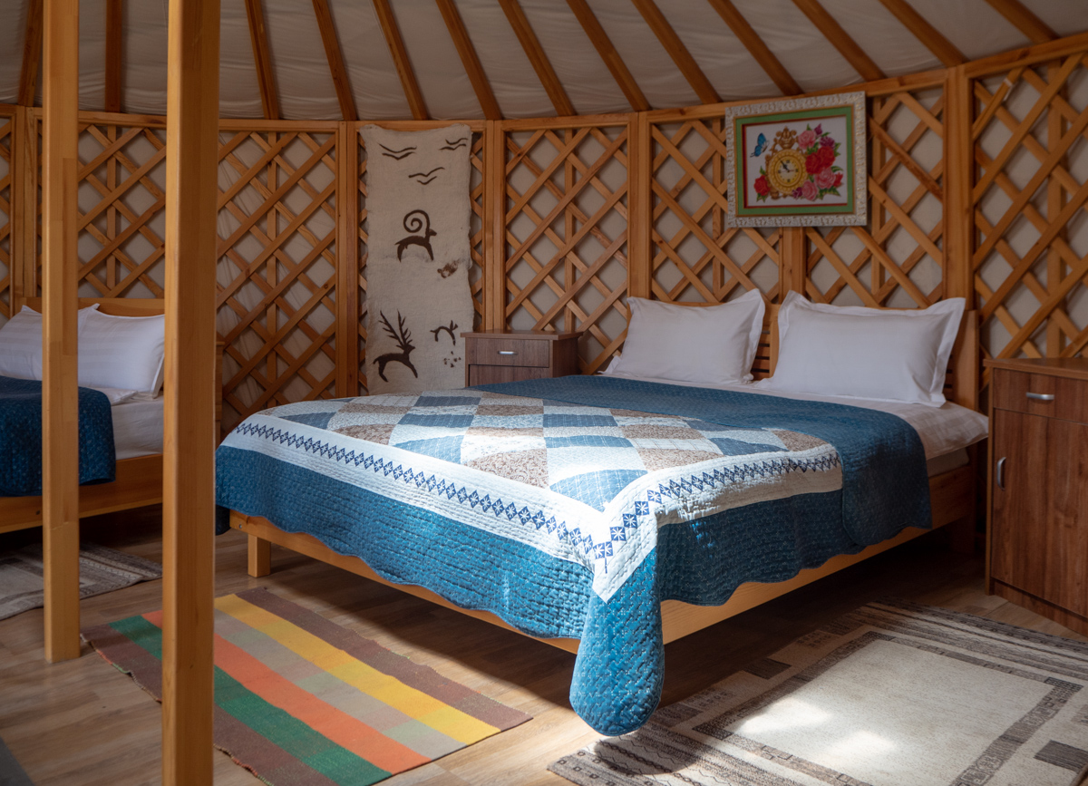 Jurtista olen itsekin kuullut, mutta ger on oudompi nimi. Kyllähän tuollaisilla mukavuuksilla voisi muutaman yön viettääkin! Kiinnitin huomiota gerien sisäpuolen puuosiin. Jotkut niistä oli taidokkaasti ja koristeellisesti tehty.