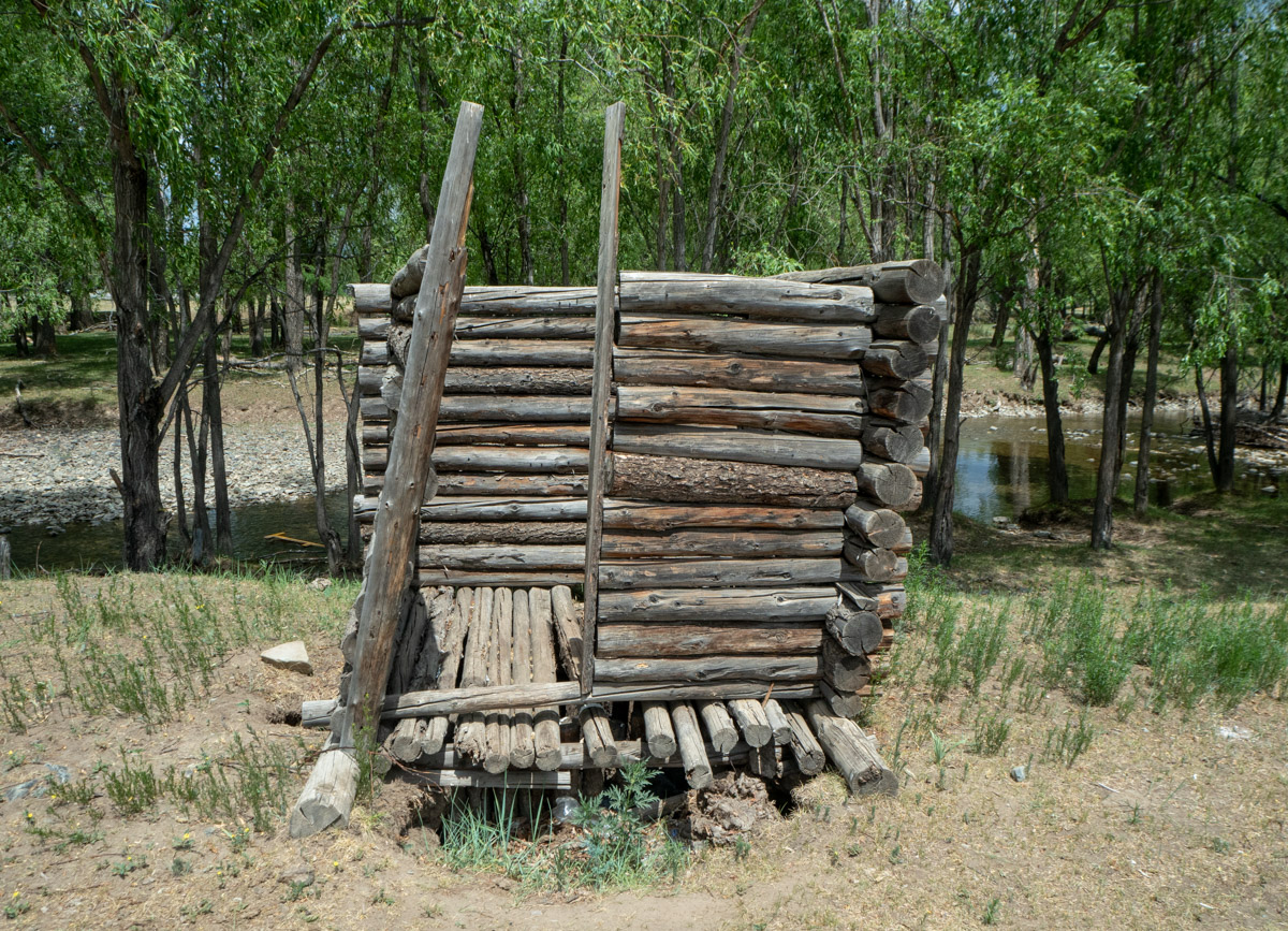 Tähän geriin ei todellakaan oltu liitetty betonirakennusta, jossa olisi sijainnut kylpyhuone, mutta ger oli kirkasvetisen joen rannalla ja pihan perellä oli puisella kehikolla ympäröity riuku.