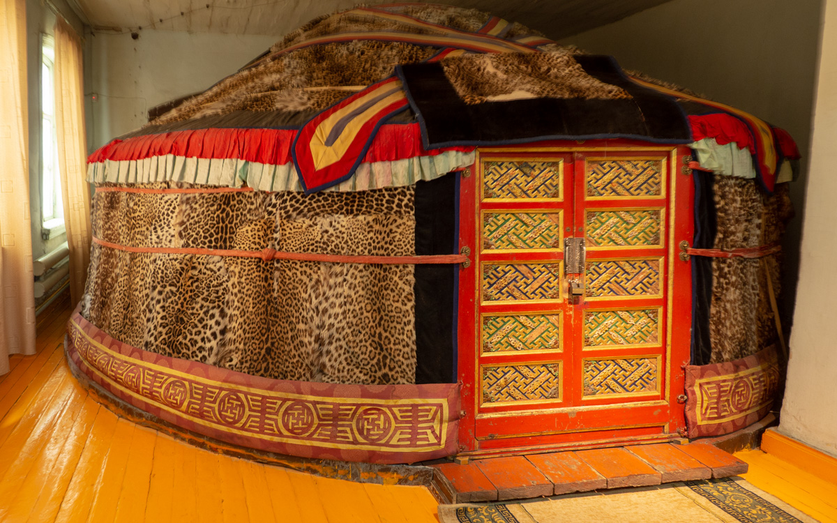 Gereihin vielä palataksemme, niin Ulan Batorissa vierailimme Mongolian viimeisen kuninkaan Bogd Khanin palatsissa ja näimme siellä myös kuninkaan käytössä olleita gerejä, myös sadalla leopardin nahalla verhoillun! Näitä gerejä emme kuitenkaan päässeet näkemään sisältä (jos niiden sisällä nyt enää mitään olikaan).