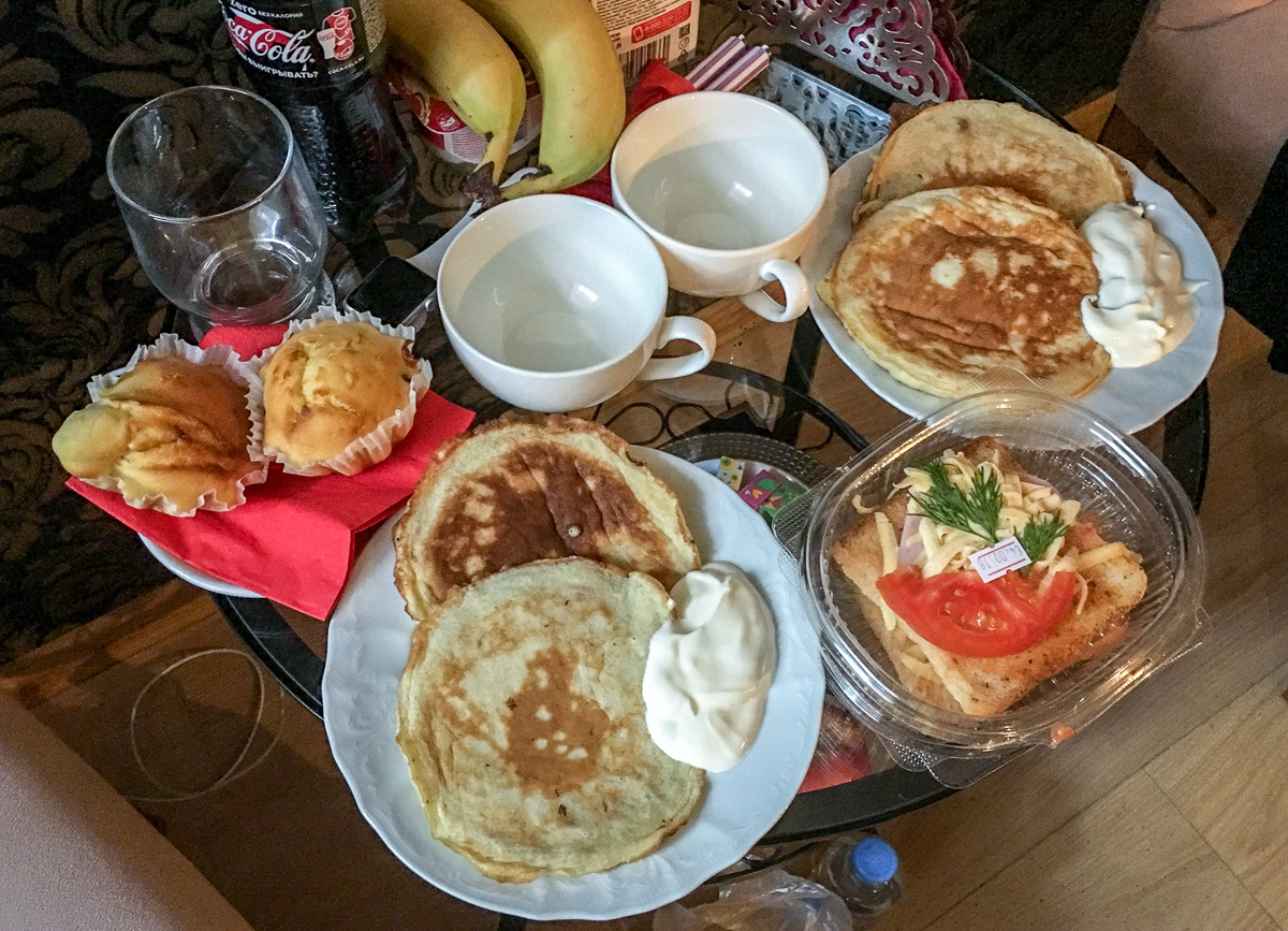 Inn Elitonia voisi kutsua vaatimattomaksi, mutta sijainti: 2 metroaseman väliä Punaiselta torilta oli hyvä. Huone oli postimerkin kokoinen, samoin kylpyhuone, mutta huoneeseen tarjottu aamiainenkin oli ehdottomasti parempi kuin tiloiltaan loistokkaan Premium hotellin aamiainen Ulan Batorissa.
