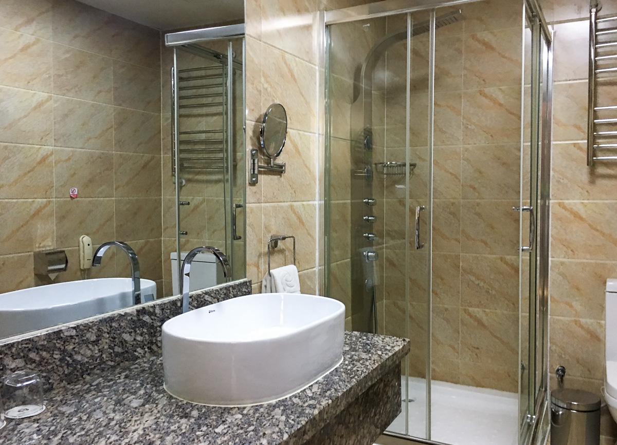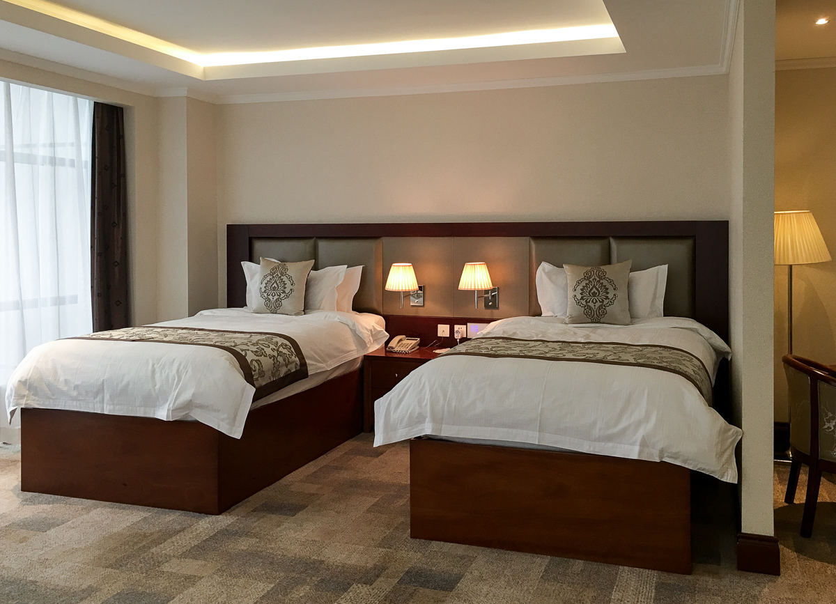 Ulan Batorin hotellin huoneet ja hotellin muutkin tilat olivat loistokkaita, mutta hotellin toimivuus oli vähän niin ja näin. Ensimmäistä huonettamme emme oikein saaneet jäähtymään auringon lämmitettyä sitä koko päivän, mutta ehkä siksi, että siitä hiukan valitimme, niin toinen huoneemme olikin iso kulmahuone, jonka lämpötilakin oli sopiva.