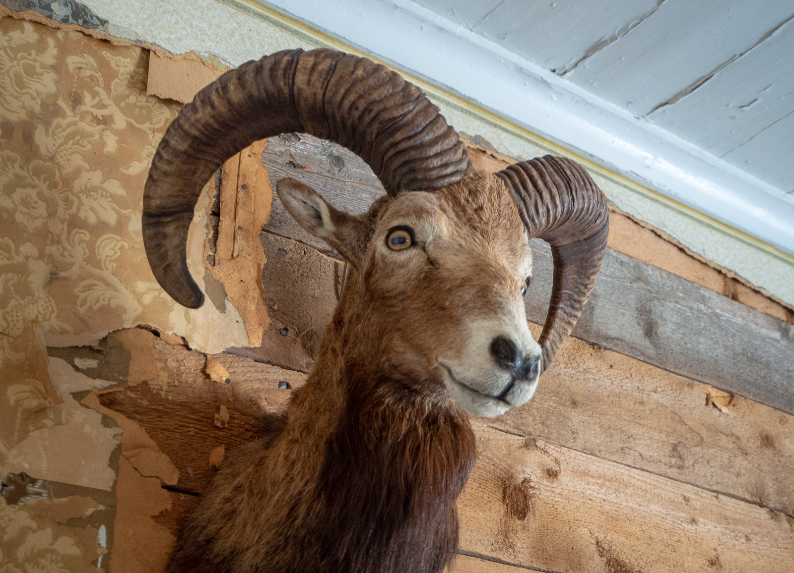 Majakan lisäksi vierailimme radiohuoneessa, jonka hauskin nähtävyys oli täytetyn Joni-muflonin pää. Säpin saarellahan ruokailee kesäisin muflon-lampaita, mutta useimmat vierailijat eivät näitä arkoja eläimiä koskaan laitumella näe. Tälläkään kertaa kukaan ei tunnustanut mufloneja elävänä nähneensä. Saarella myös laiduntavan ylämaan karjan edustajan joku oli kuulemma nähnytkin.