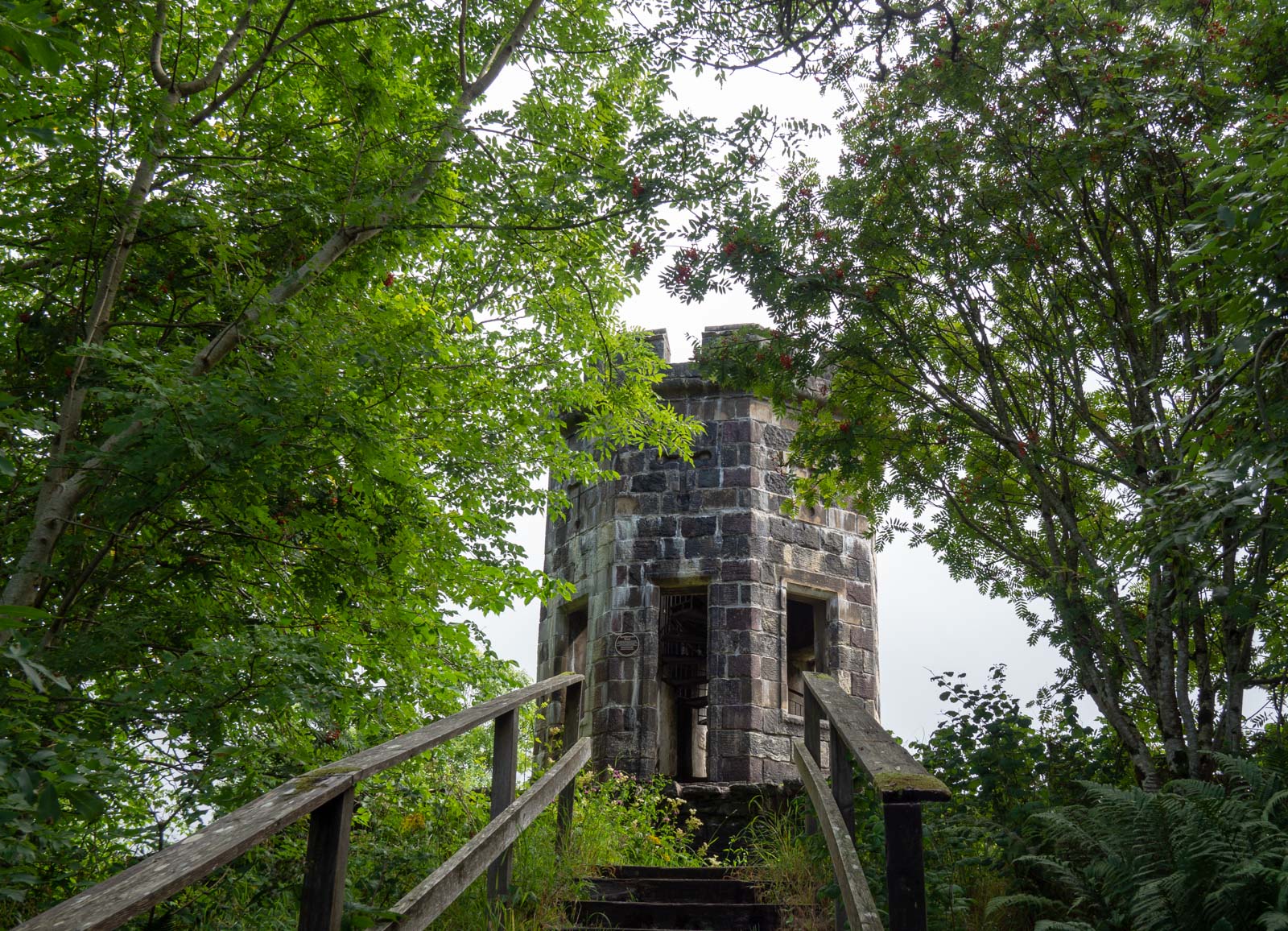 Rantojen väliin jää The Lump -niminen niemi, jonka ympäri kiertää lyhyt polku ja jonka päällä on vanha torni. Lähdimme, tietysti, vaeltamaan niemen ympäri – olimmehan vaellusmatkalla – ja kävimme lopuksi katsastamassa vanhan torninkin. Niin rantapolku kuin tornikin tarjosi kivasti näkymiä merelle Portreen edustalla.