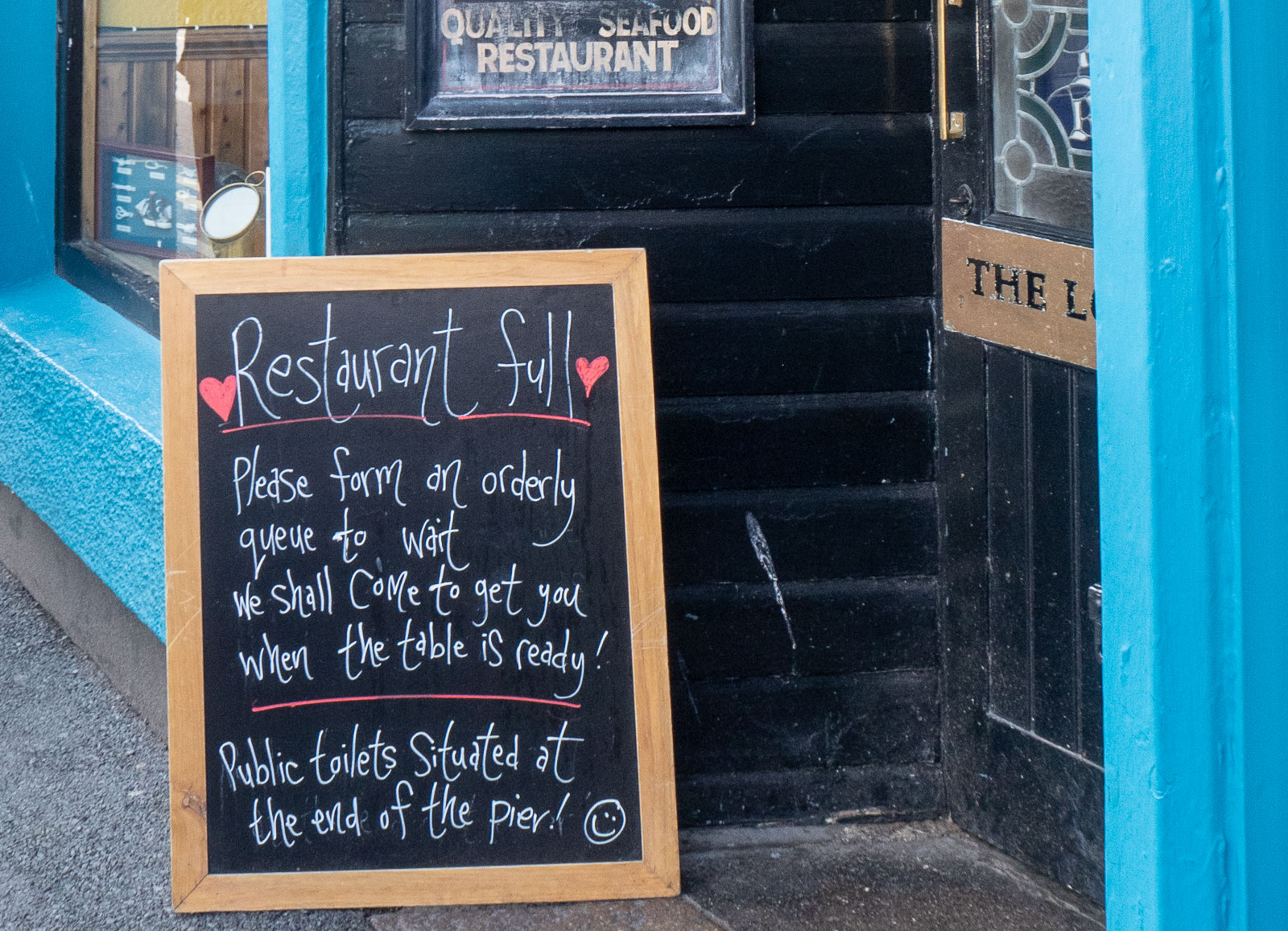 Vaeltamisesta tulee tietysti nälkä, joten laskeuduimme vielä kerran satamaan valitsemaan sopivaa fish & chips -paikkaa lounaalle ja löytyihän sellainen. Jopa sellainen, johon mahduimme sisään, jonottamatta.