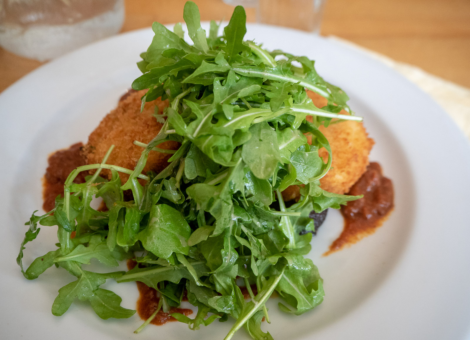 eli suomeksi vuohenjuustopalleroita punajuurisalaatilla, perunapaistoksia ja sieniä todella maittavalla tomaattikastikkeella höystettynä ja kanaa ja riisiä – emmekä pettyneet!