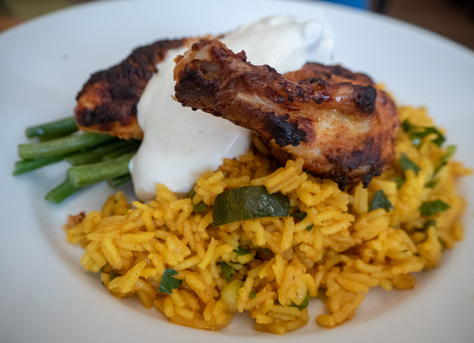 - Free Range Irish Tandoori Chicken Breast, Pilaf Rice, Garlic Green Beans