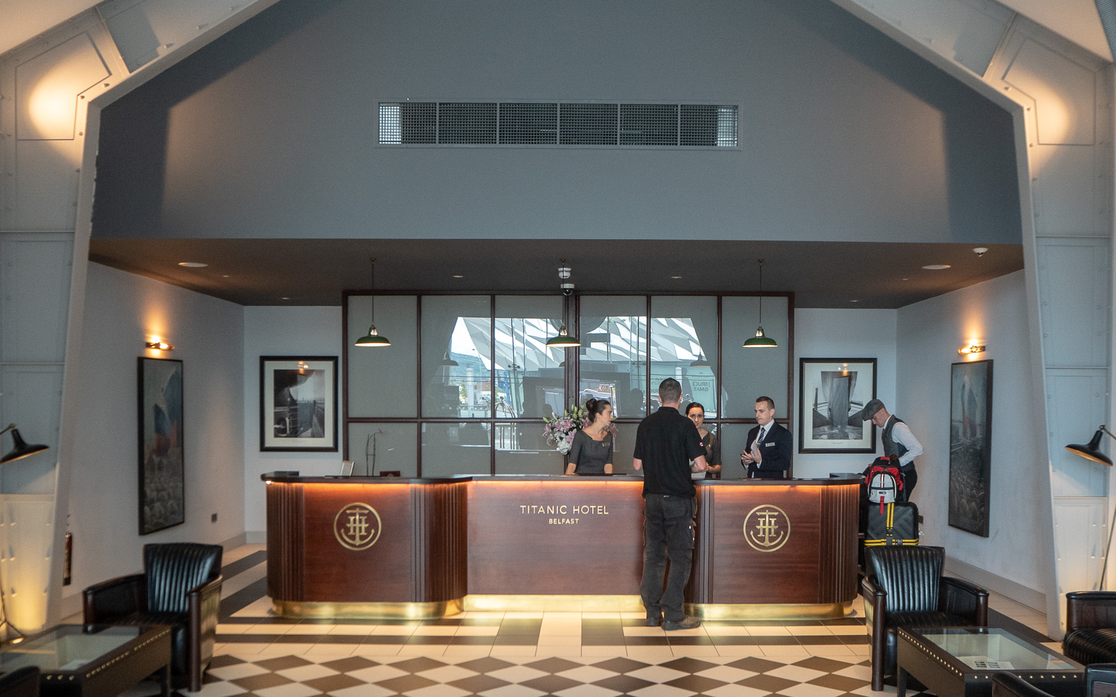 Titanic Hotel Belfast on ihan museon vieressä – illalla museota voi ihailla vaikka omasta hotellihuoneestaan. Hotelli on myös osa Titanicin historiaa, sillä se on toteutettu Harland & Wolffin, Titanicin toteuttaneen telakan toimisto.