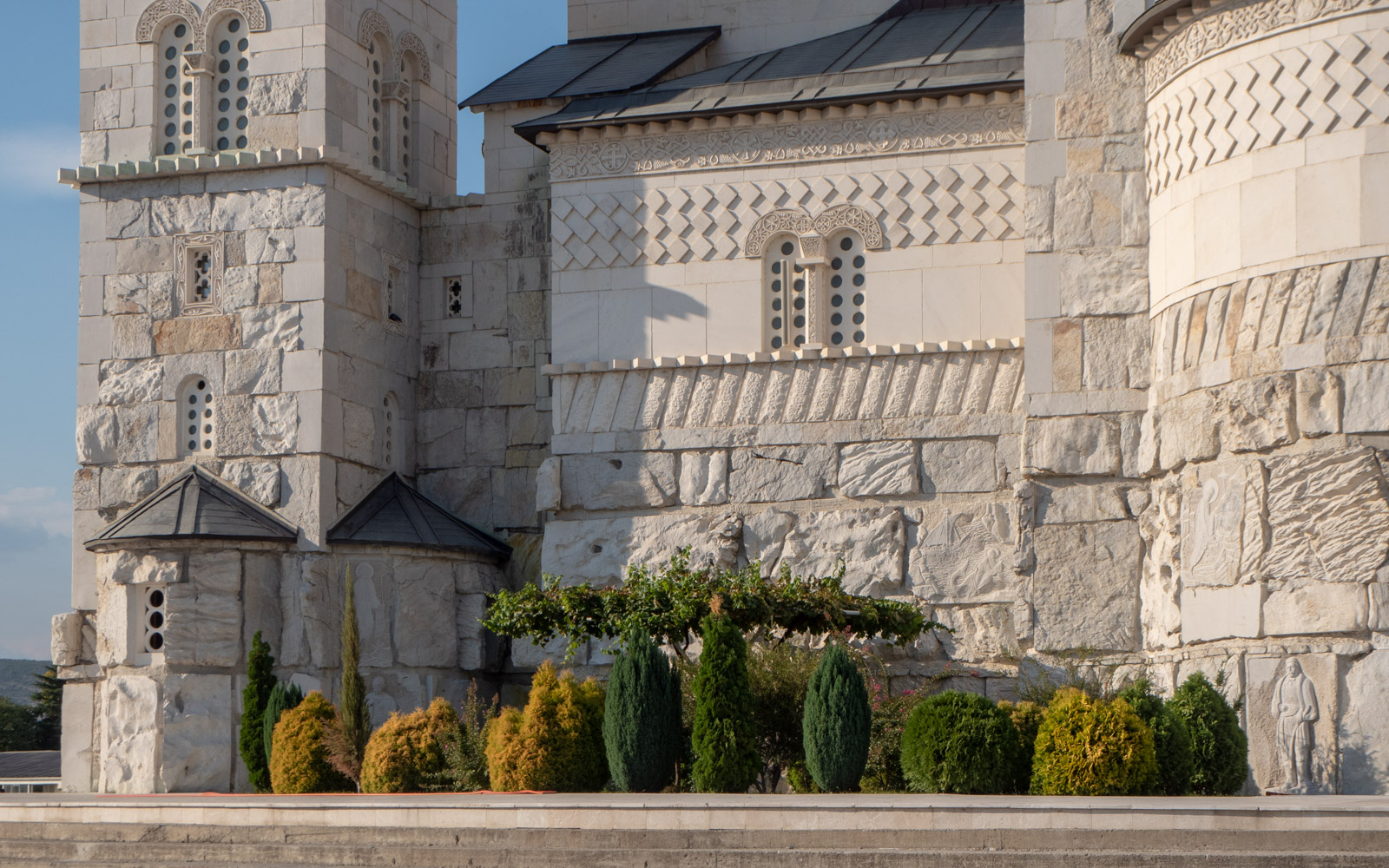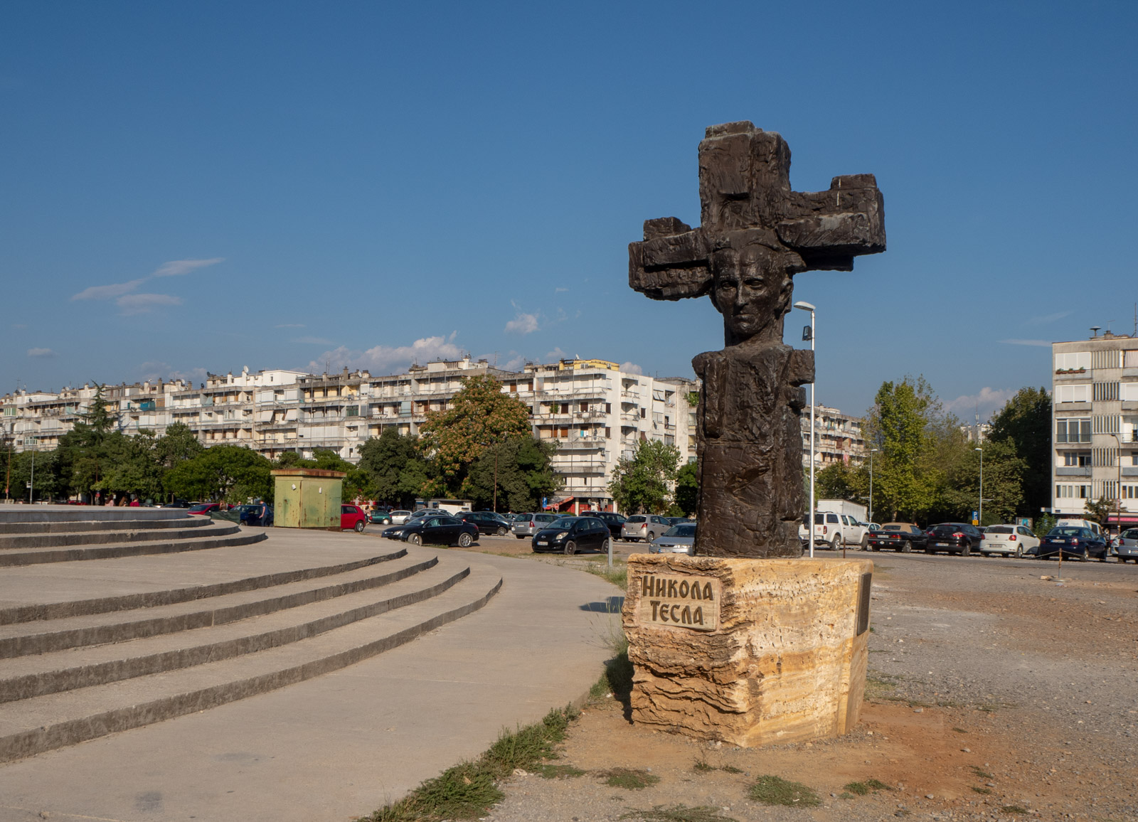 Valkoinen kirkko isolla tontilla oli komea, joskin viehätyin eniten pieneen puutarhaan kirkon vierellä. Nikolai Teslan patsas yllätti – siitä huolimatta, että sankari on syntynyt aikoinaan Itävallassa (nykyisen Kroatian alueella) ja opiskellut Grazissa, niin kaikki nämä entisen Jugoslavian maat tuntuvat omineet hänet. Ehkä hänellä on ollut joku liittymä Podgoricaankin.