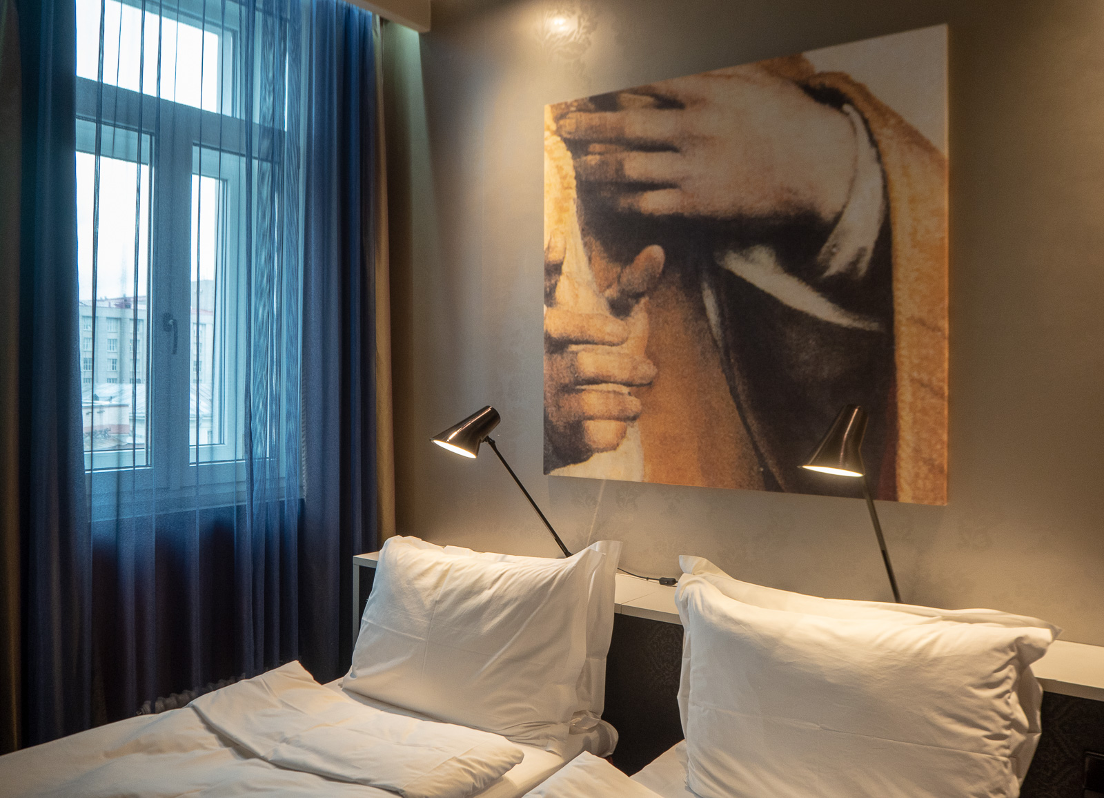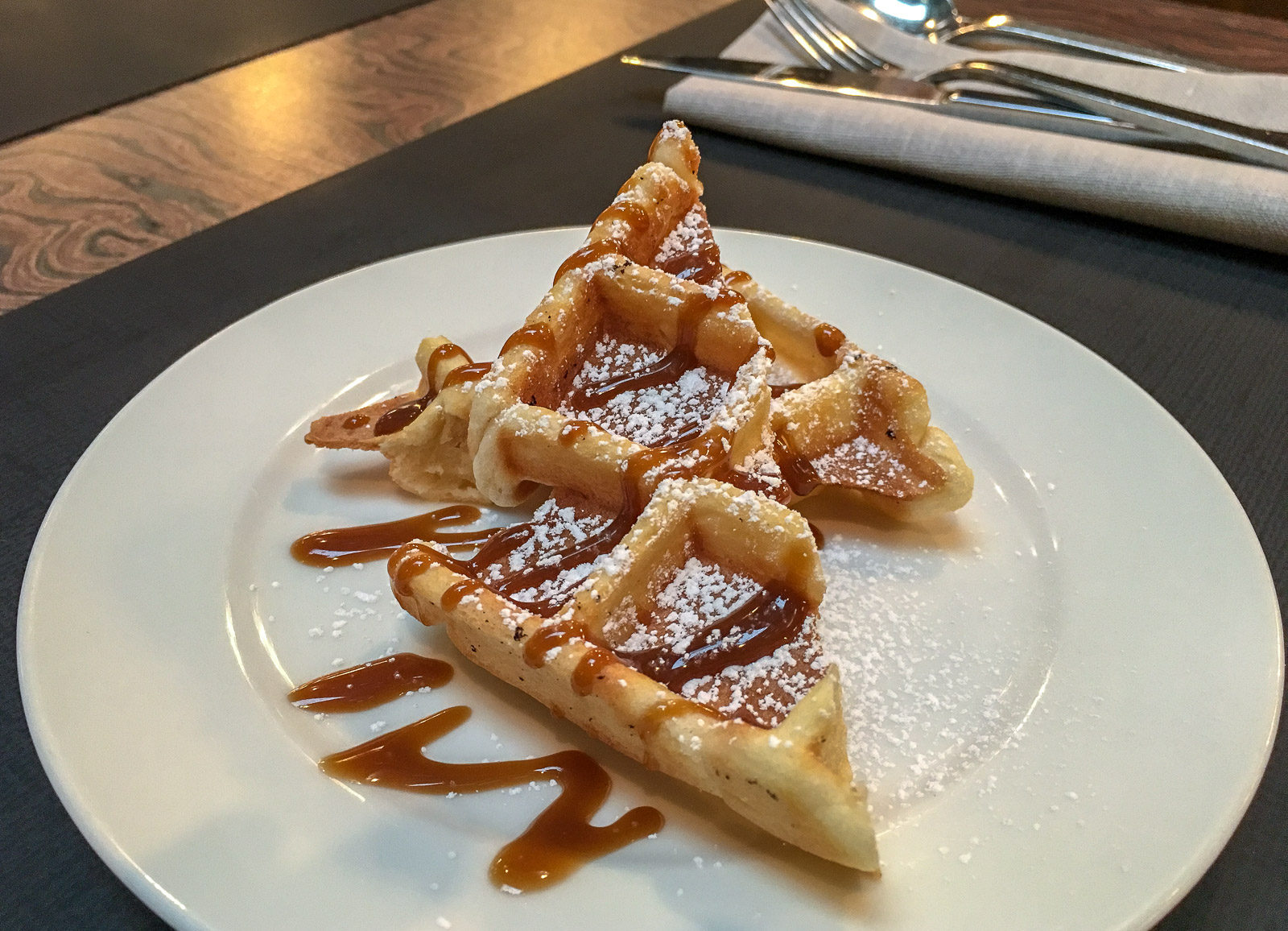 Olemme siis hiukan ärtyneitä pitkäksi venyneen illan ja aikaisen herätyksen yhdistelmästä raahautuessamme aamiaiselle, mutta Radisson Sonyan aamiainen lepytti meidät pian. Ei tällaisen vohvelin äärellä voi olla vihainen!
