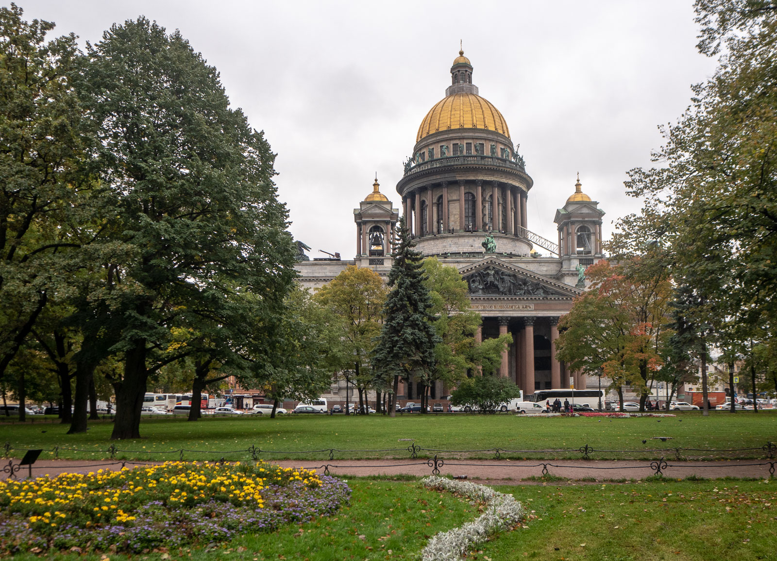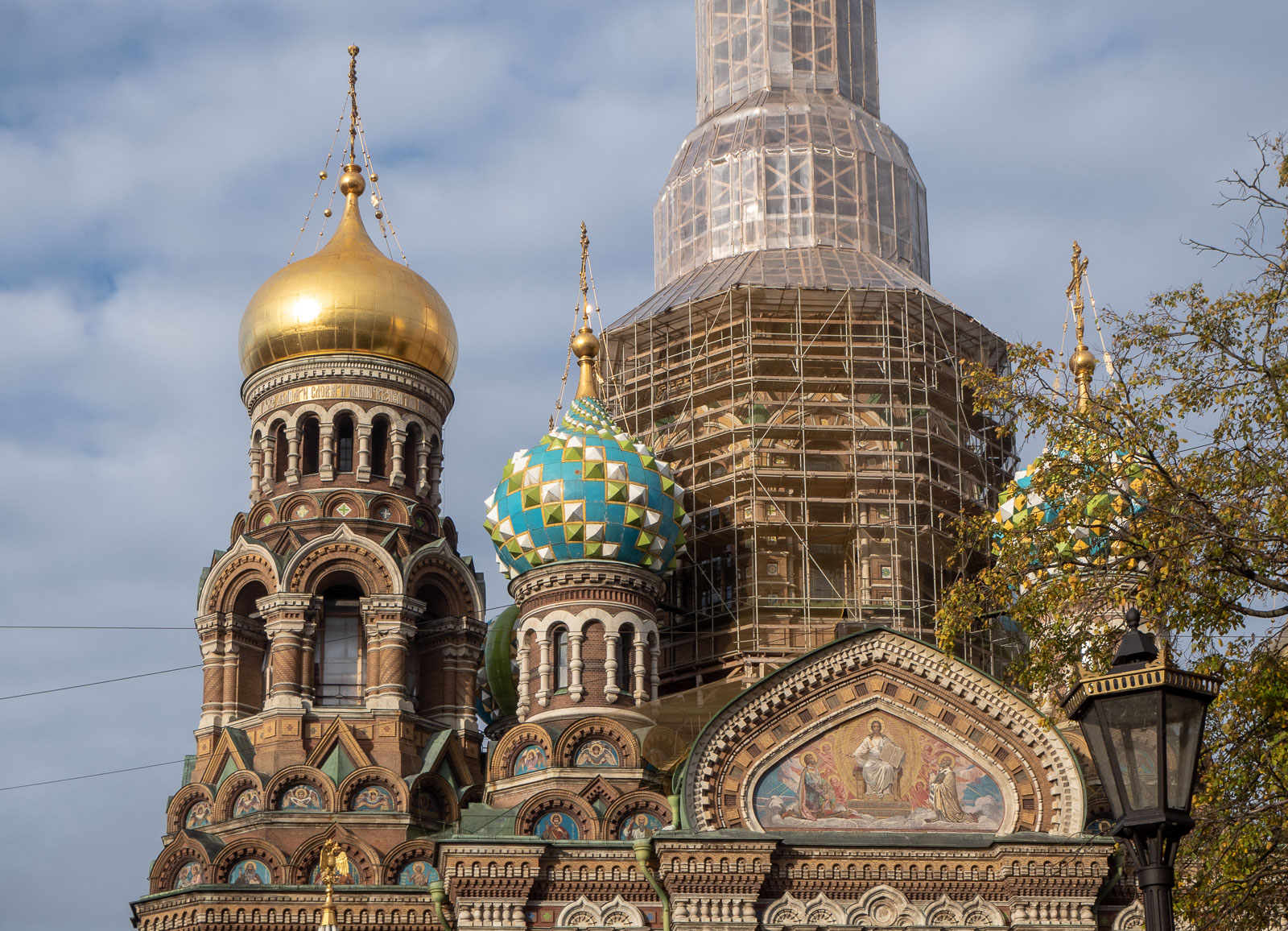 Aloitimme kävelemällä Verikirkolle – samantyylinen Pyhän Vasilin katedraali Moskovassa vaati parikseen tuoreen mielikuvan tästäkin kirkosta. Matka viereisen Michailovskyn puiston läpi sai hetkeksi tunnelmoimaan kesäillasta Pietarissa vaikka lokakuussa puut olivatkin jo syksyn keltaisia ja oransseja.