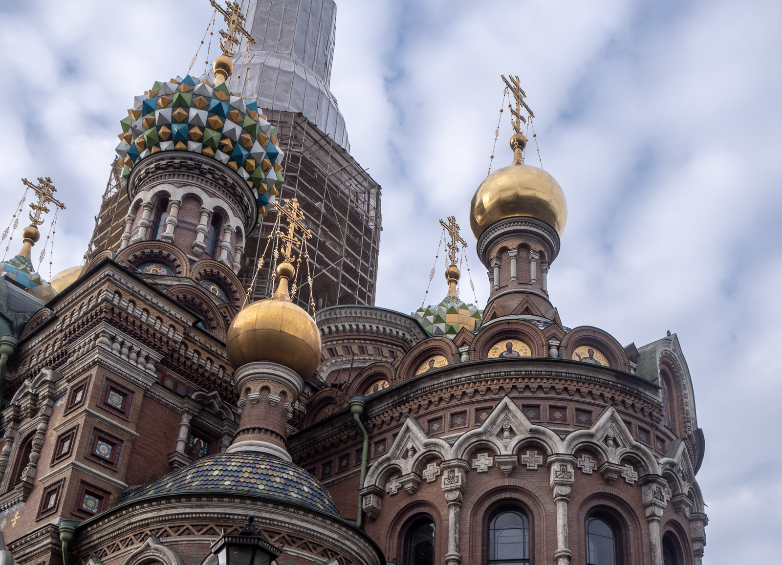 Verikirkon korkein kupoli oli verhoitunut harmaaseen pressuun, mutta monet muut tämän ortodoksikirkon kupoleista loistivat joko riemukkaissa väreissä tai kimaltelivat kultaisina. Tyydyimme ihailemaan kirkkoa ulkopuolelta, vaikkakin olisihan mahdollista, että kirkon sisällä uskonnollisilla mosaiikkikuvilla verhoillut kirkon katto ja seinät olisivat olleet näkemisen arvoisia nekin.