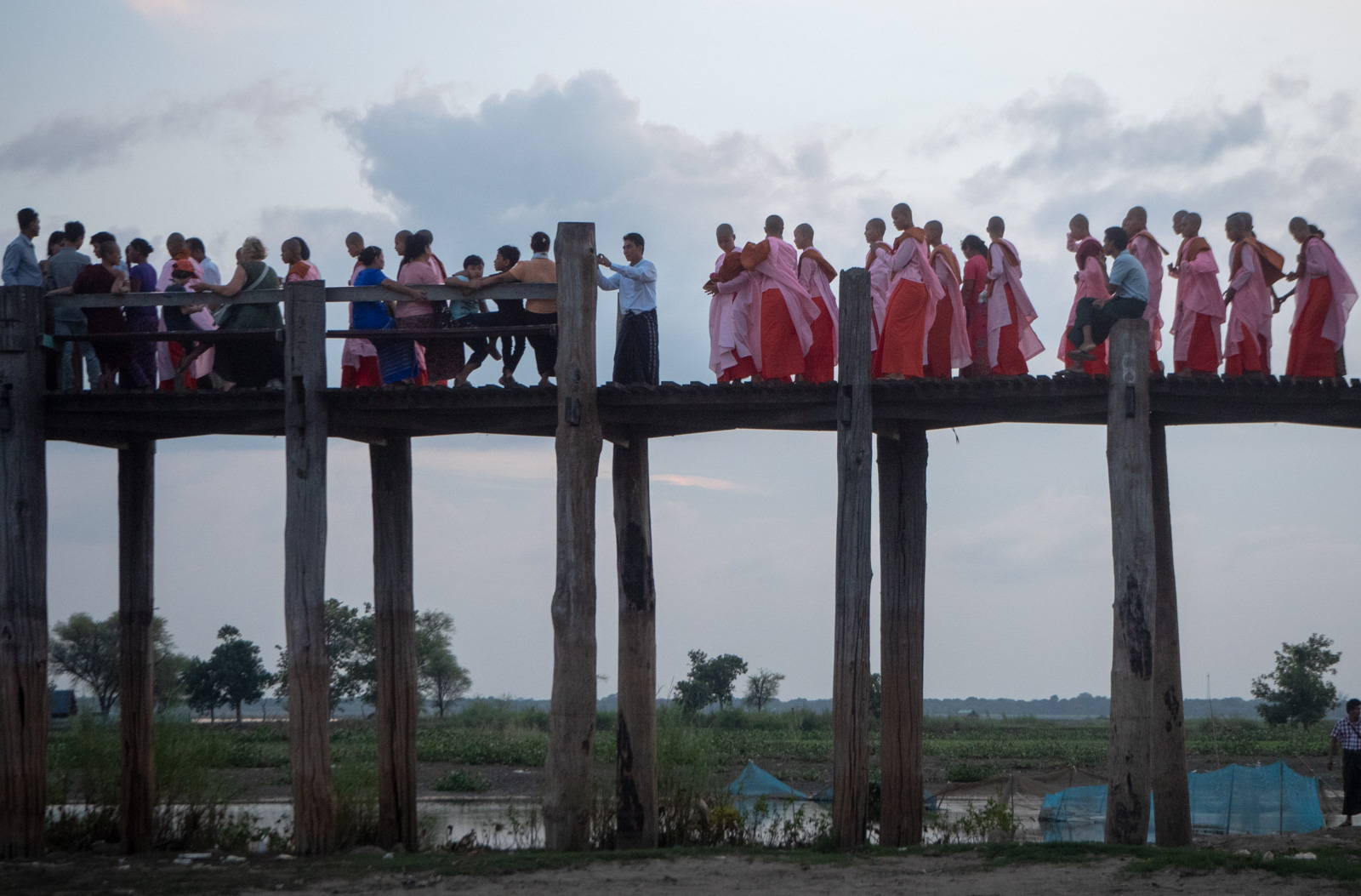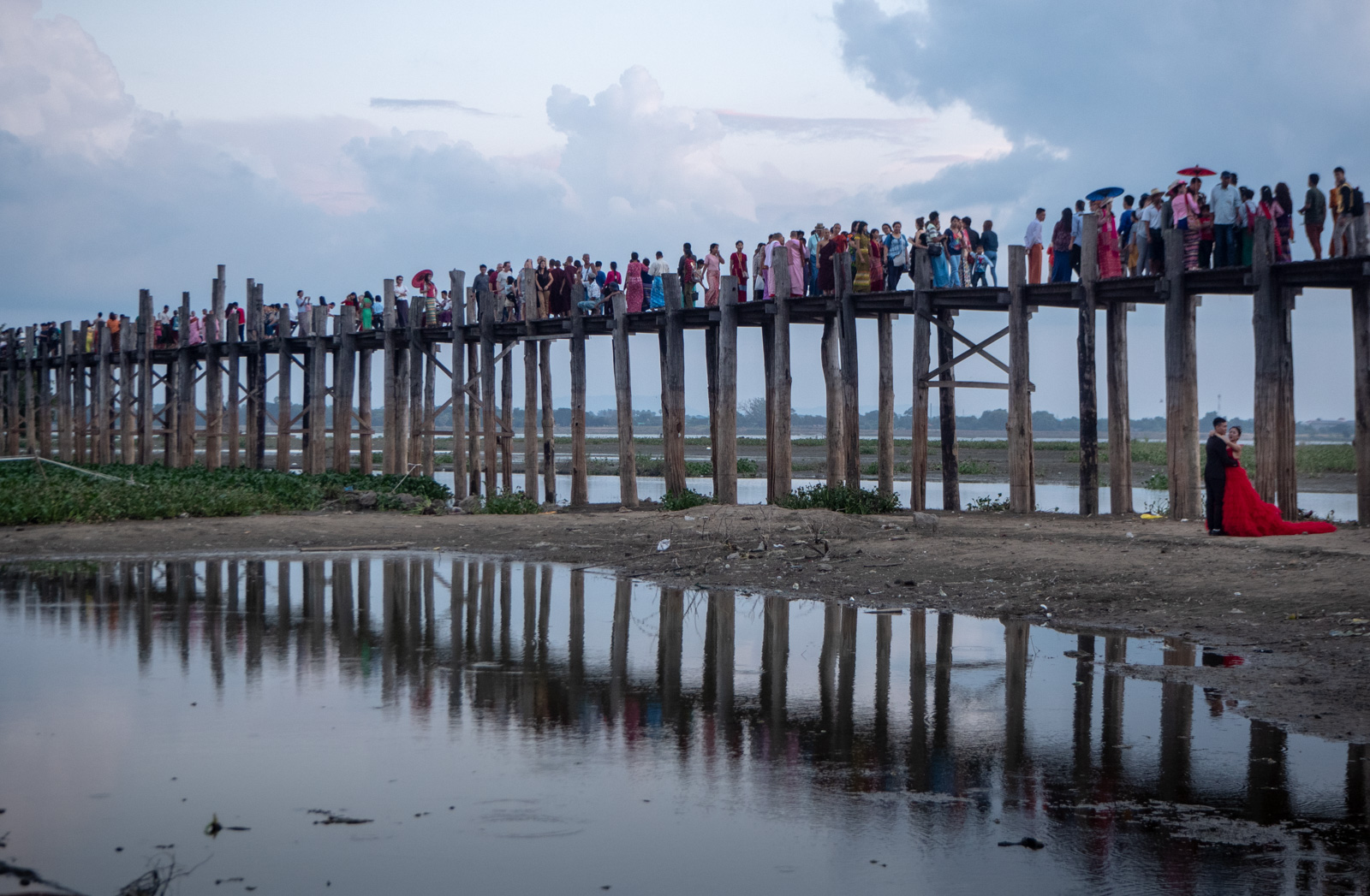 U Beinin silta “kuuluu” nähdä auringonlaskun tai auringonnousun aikaa. Me saavuimme sillalle hiukan ennen auringonlaskua ja sitä autolla lähestyessämme näki heti, että tämä silta on ollut monen muunkin Mandalayssa vierailevan mielessä.