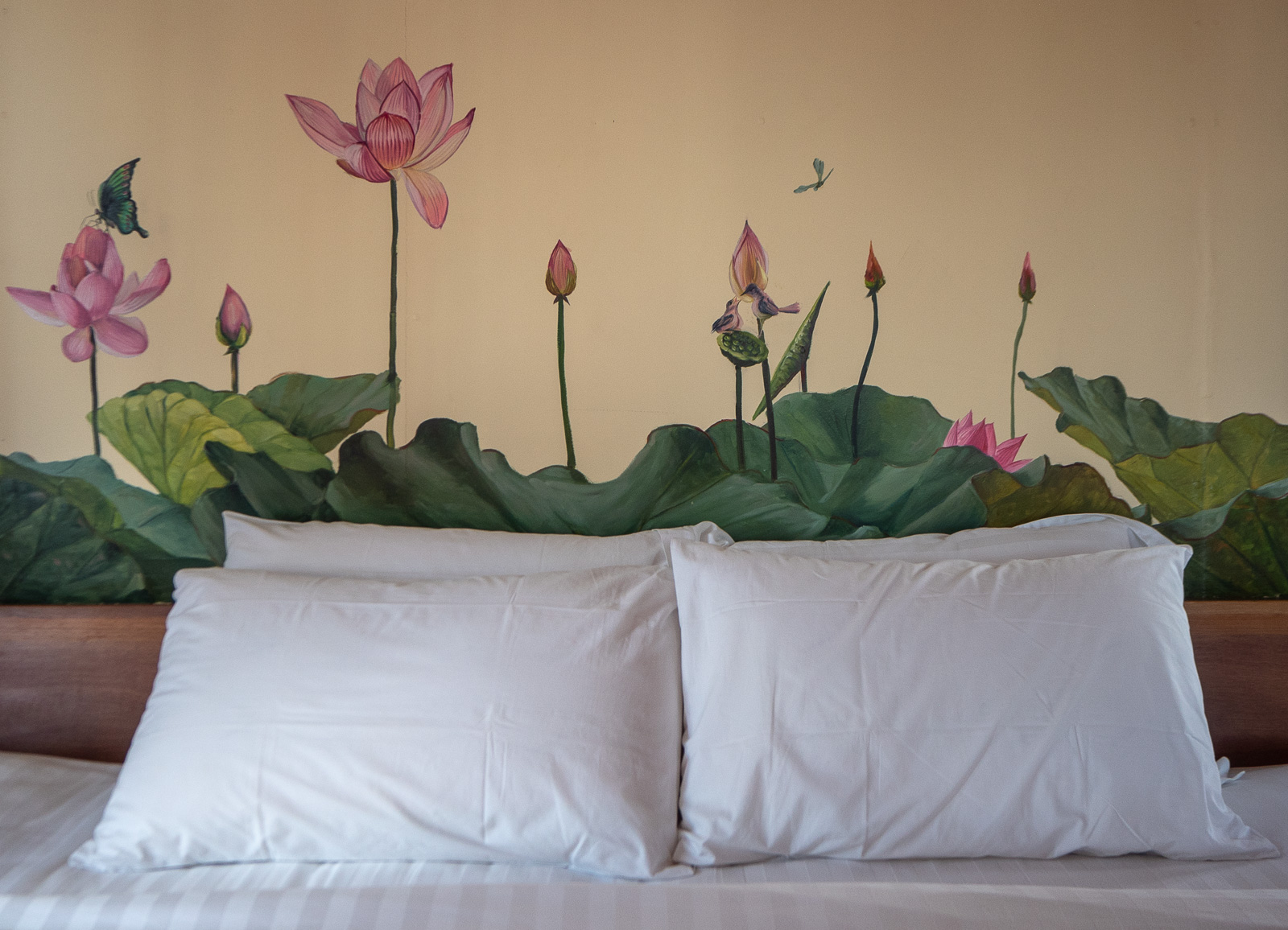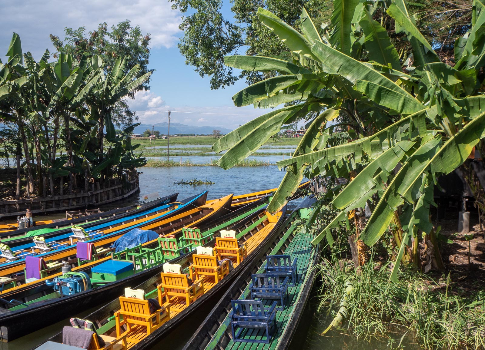 Hotelli sijaitsee yhden Inle-järven valtaväylän varrella, joten pitkähäntäveneet porhaltavat sen ohi äänekkäästi pöristen päivän mittaan jokseenkin tauotta. Mutta veneliikenne hiljenee auringon laskiessa, joten yöt olivatkin tällä sitten ihan hiljaisia.